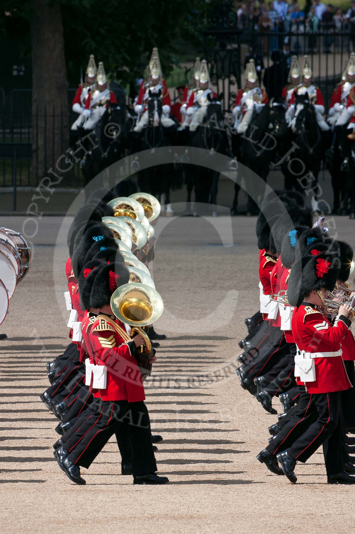 Trooping the Colour 2009: The Massed Bands marching - here a row of euphonists. In the background The Life Guards, Household Cavalry..