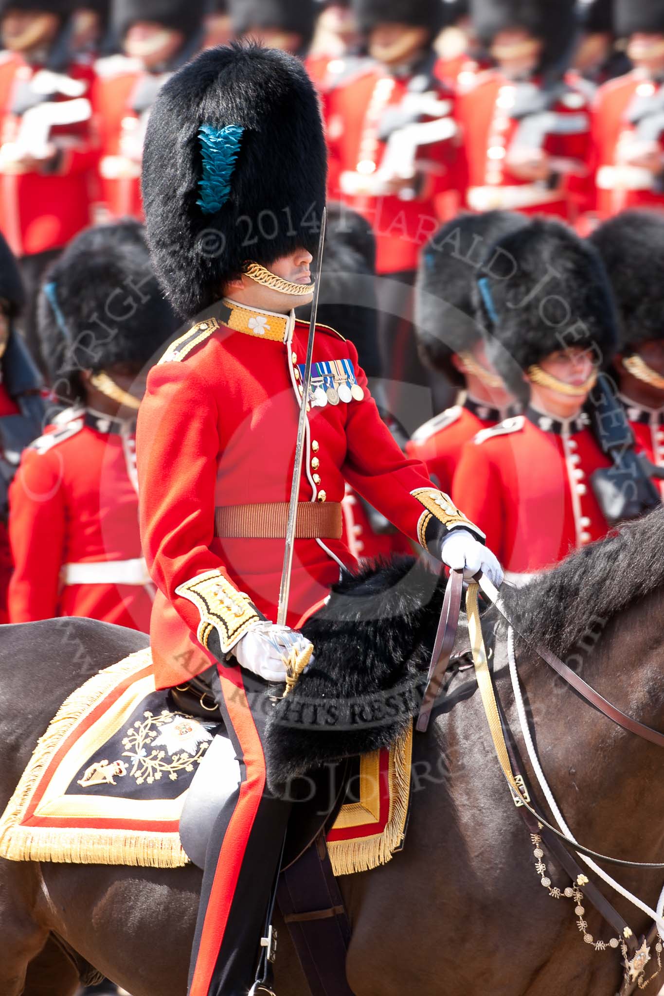 Trooping the Colour 2009: The Field Officer, Lieutenant Colonel Ben Farrell, Irish Guards, riding 'Wellesley'..