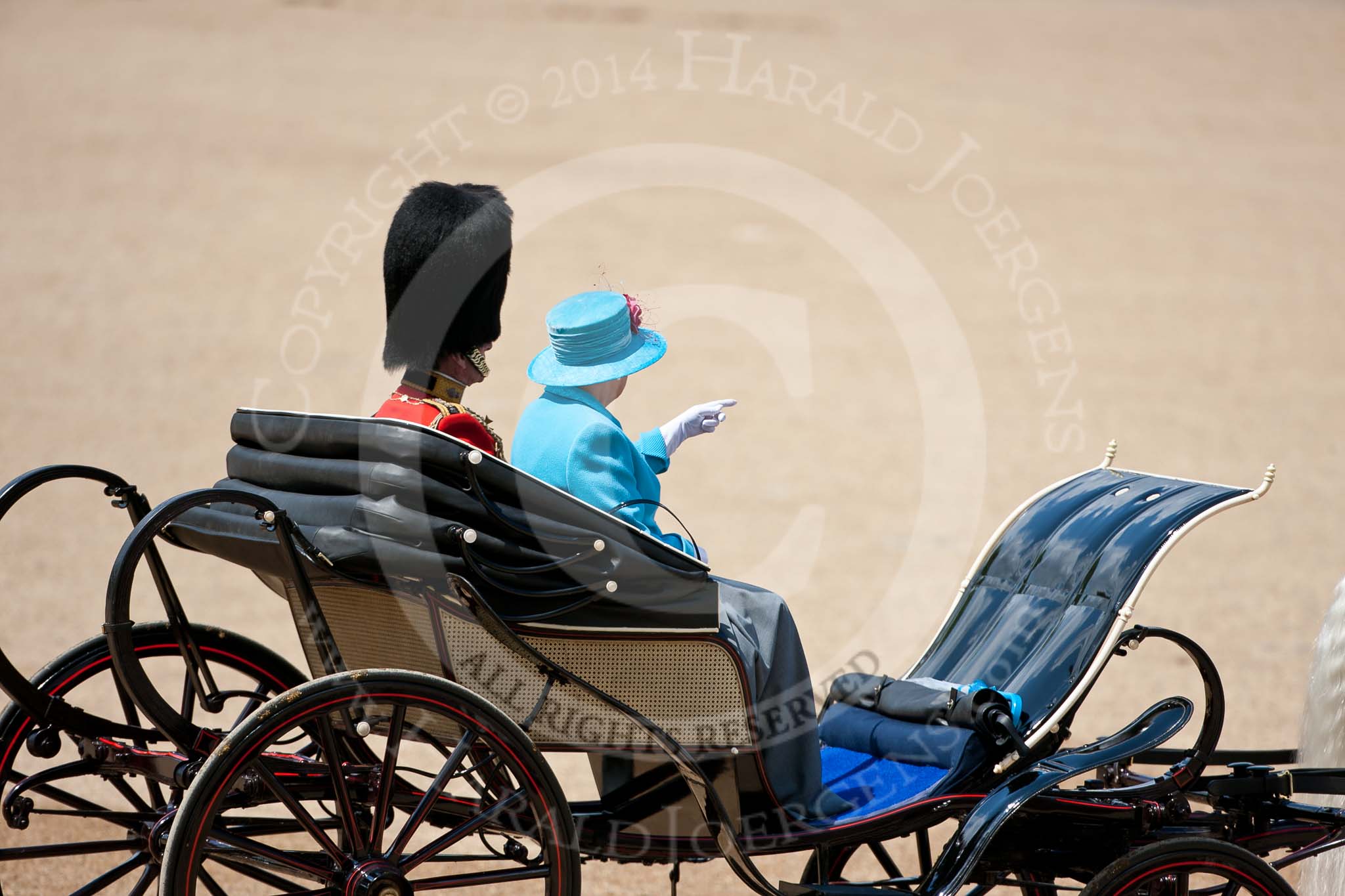 Trooping the Colour 2009: After the parade back in the ivory mounted phaeton - HM The Queen and HRH Prince Philip, The Duke of Edinburgh.. Horse Guards Parade, Westminster, London SW1, United Kingdom, on 13 June 2009 at 12:11, image #257