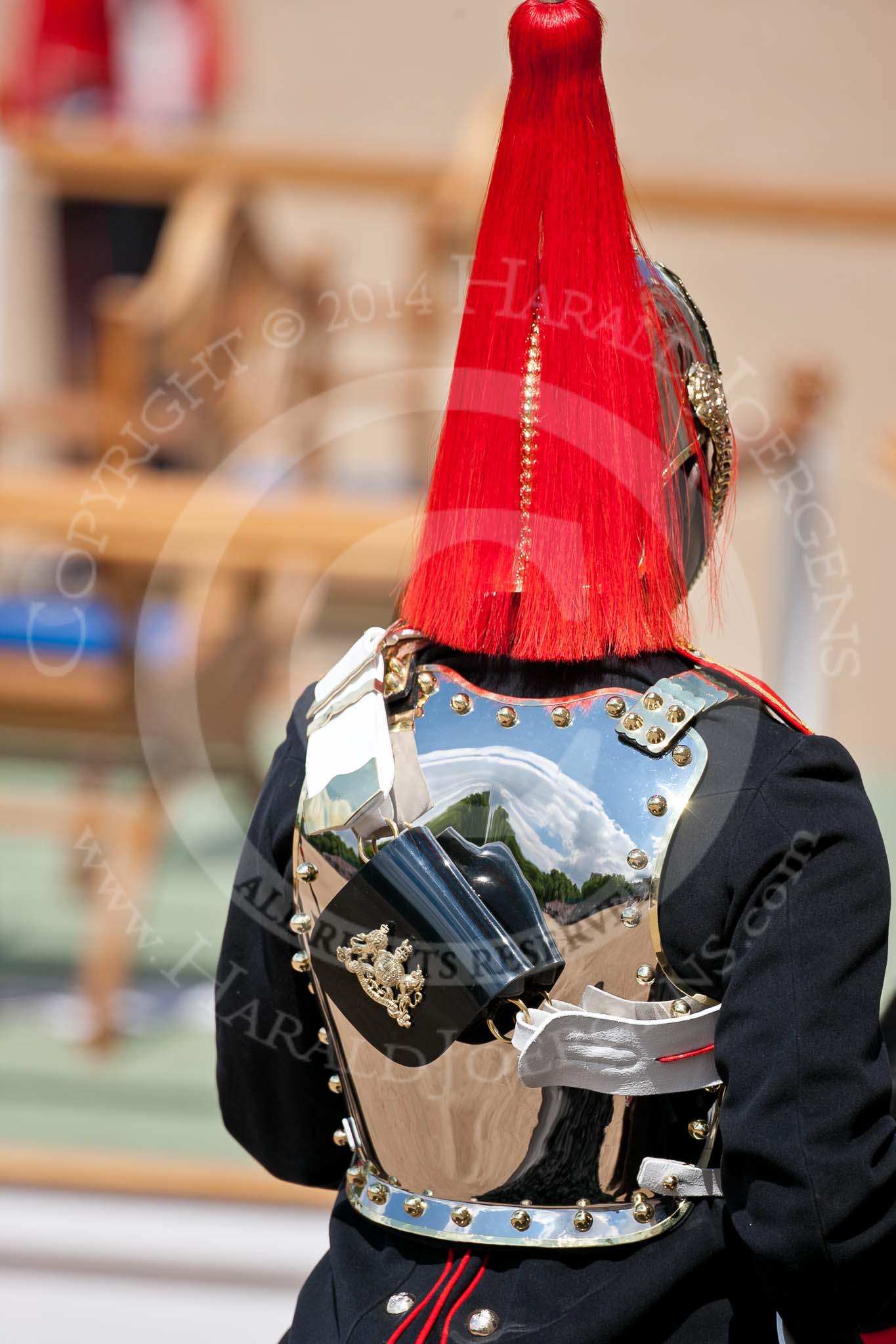 Trooping the Colour 2009: One of the four Troopers of the Blues and Royals, part pf the Royal Procession, about to ride off at the end of the parade.. Horse Guards Parade, Westminster, London SW1, United Kingdom, on 13 June 2009 at 12:14, image #266