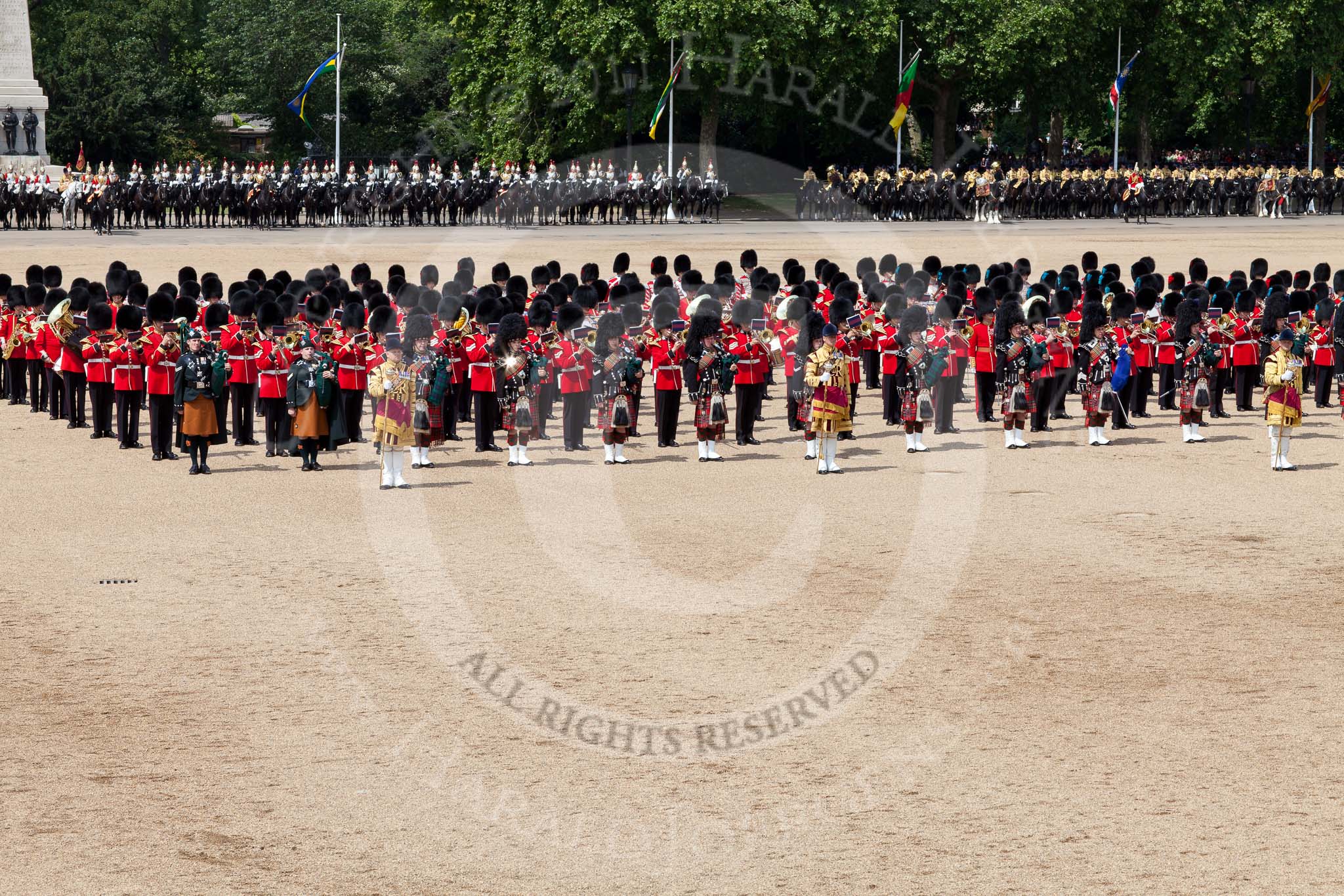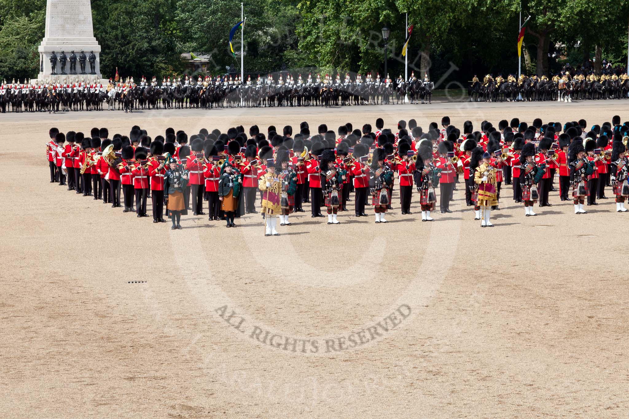 The Colonel's Review 2011: The Massed Bands, in the Centre of Horse Guards Parade during the March Past.. Horse Guards Parade, Westminster, London SW1, United Kingdom, on 04 June 2011 at 11:44, image #206