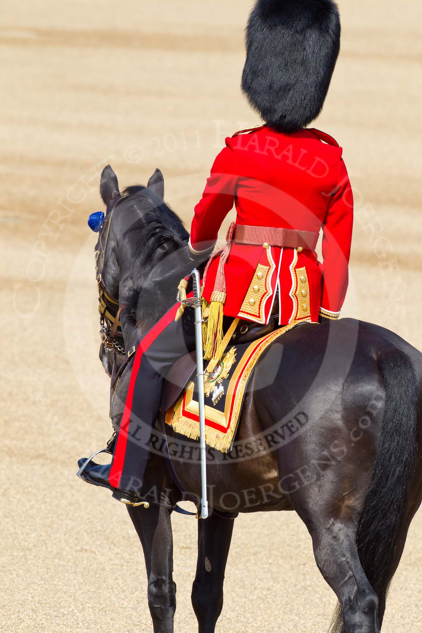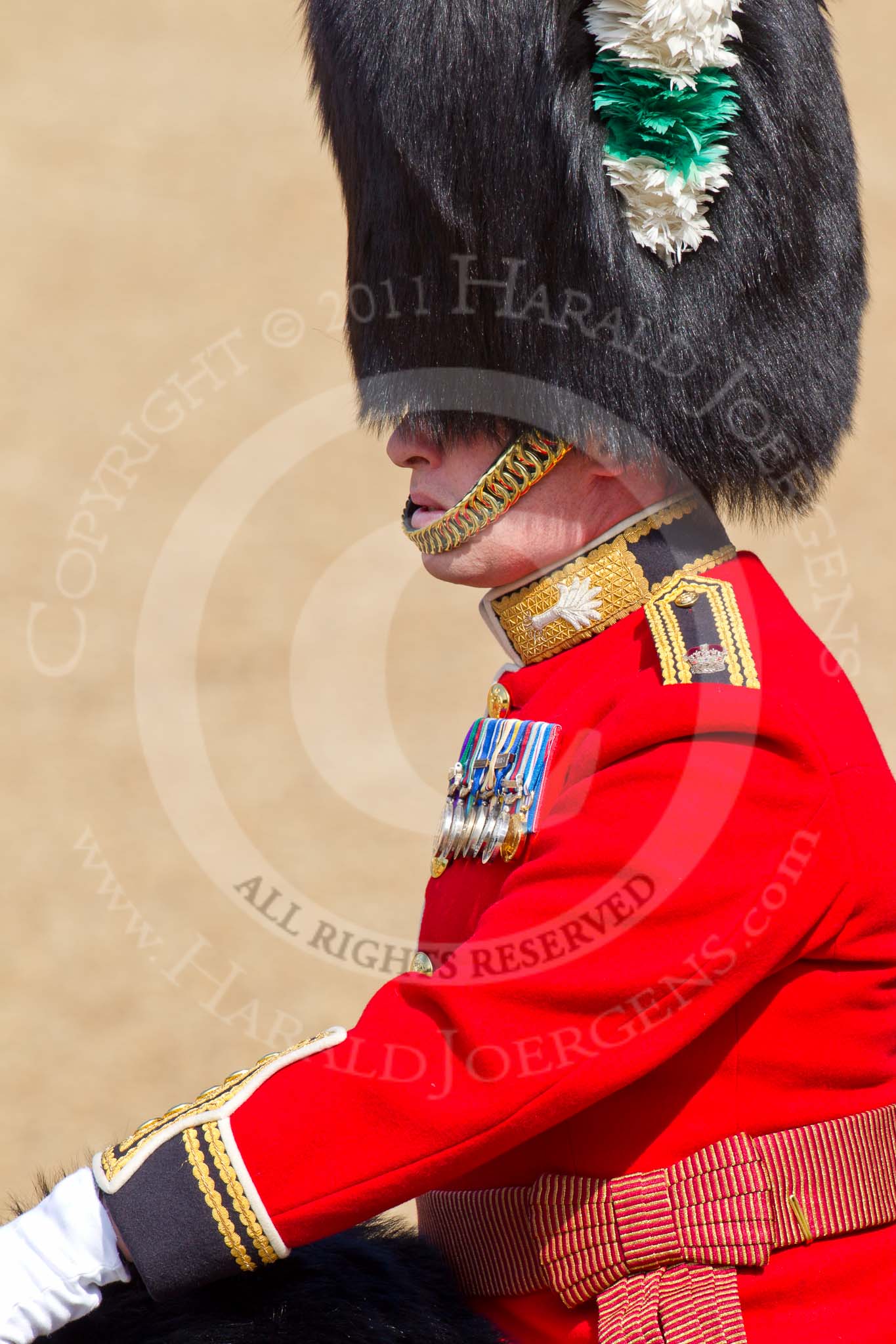 The Colonel's Review 2011: Close-up of the Major of the Parade, Major Benedict Peter Norman Ramsay, Welsh Guards. He was awarded a CBE on the day of the parade during The Queen's Birthday Honour.. Horse Guards Parade, Westminster, London SW1, United Kingdom, on 04 June 2011 at 10:36, image #51