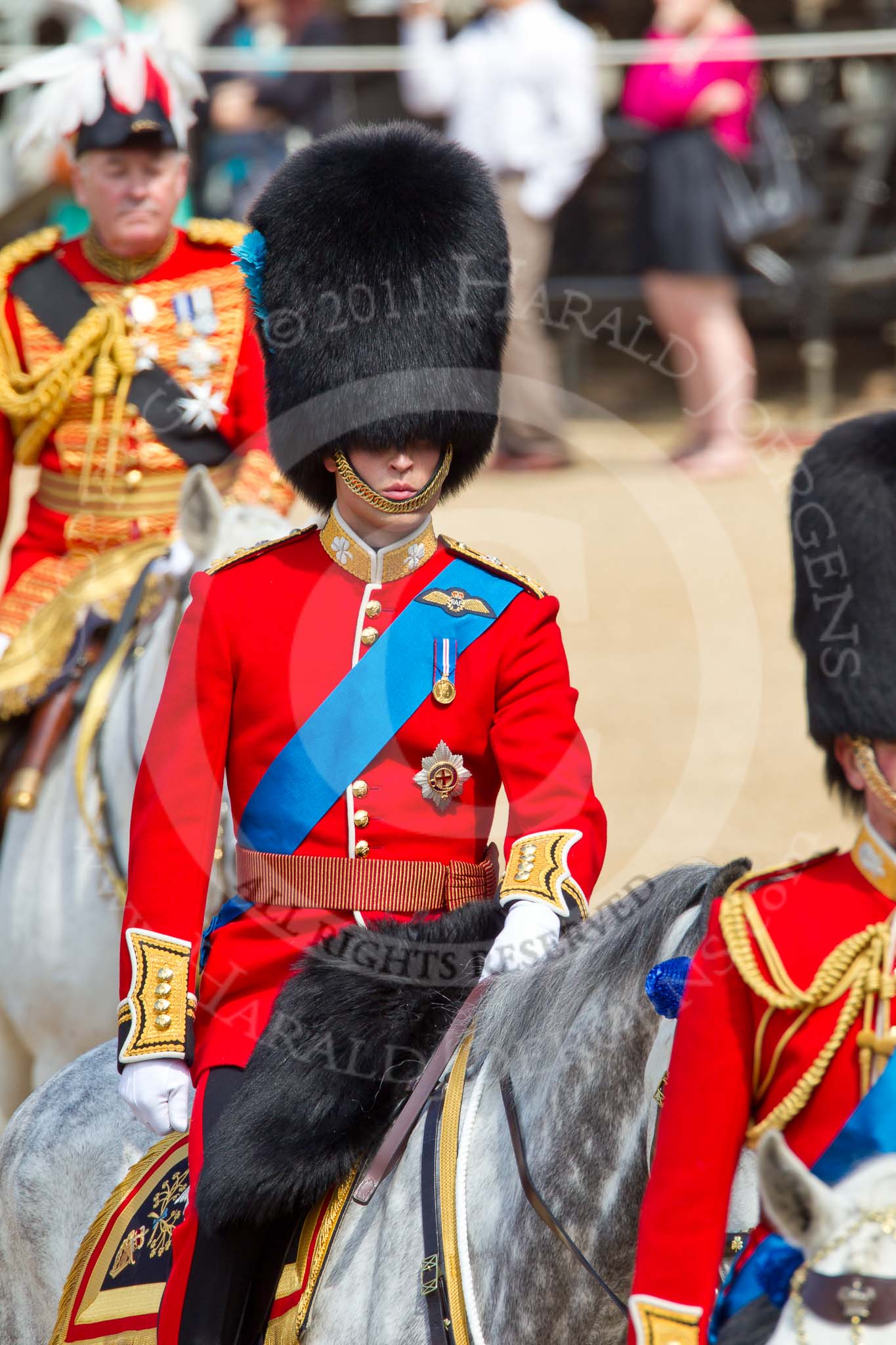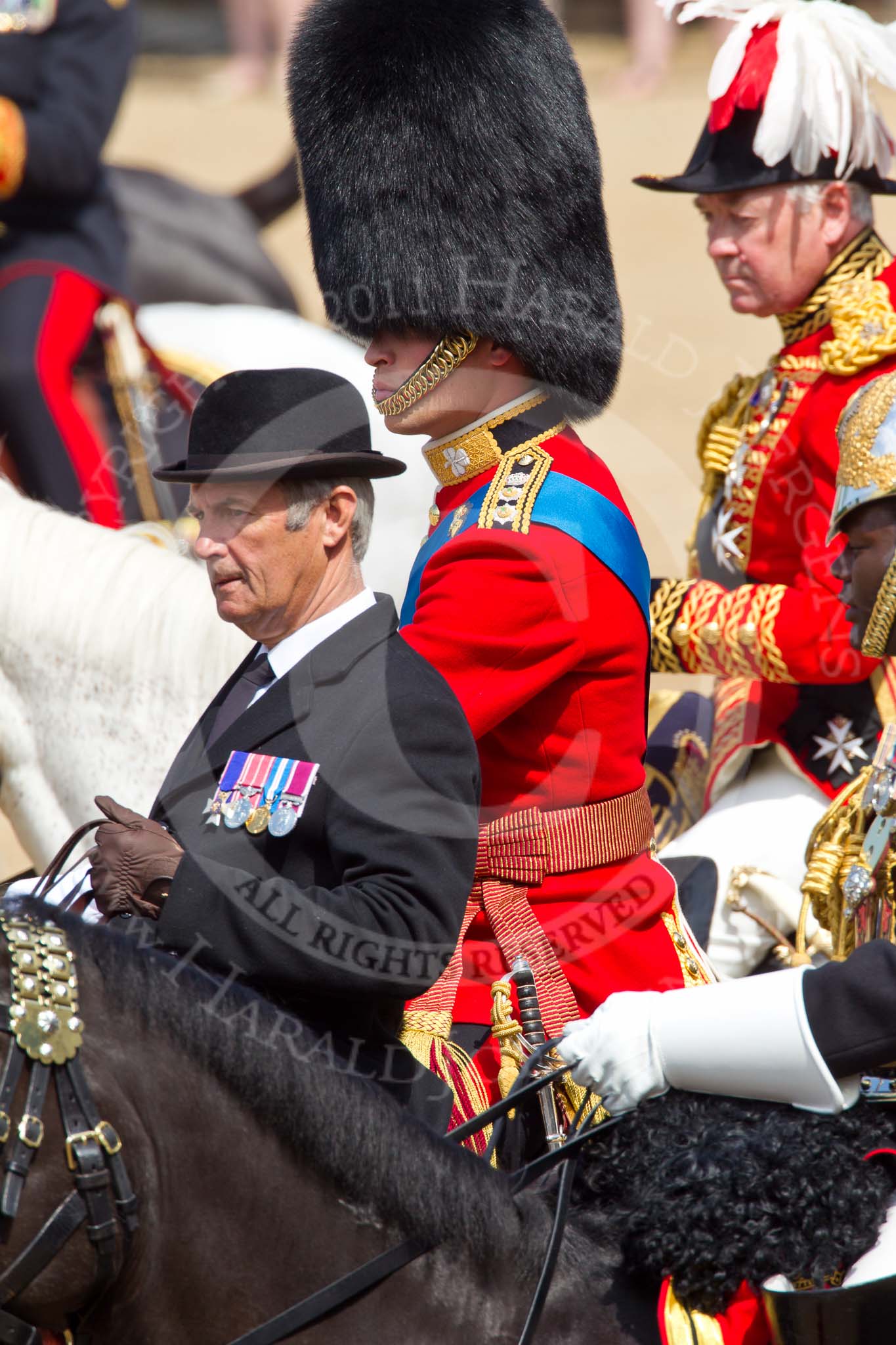 The Colonel's Review 2011: During The Colonel's Review standing in for The Princess Royal, the Queen's Stud Groom, riding in place of The Prince of Wales, behind him HRH Prince William, The Duke of Cambridge, behind him the Master of the Horse, The Lord Vestey.. Horse Guards Parade, Westminster, London SW1, United Kingdom, on 04 June 2011 at 11:00, image #87