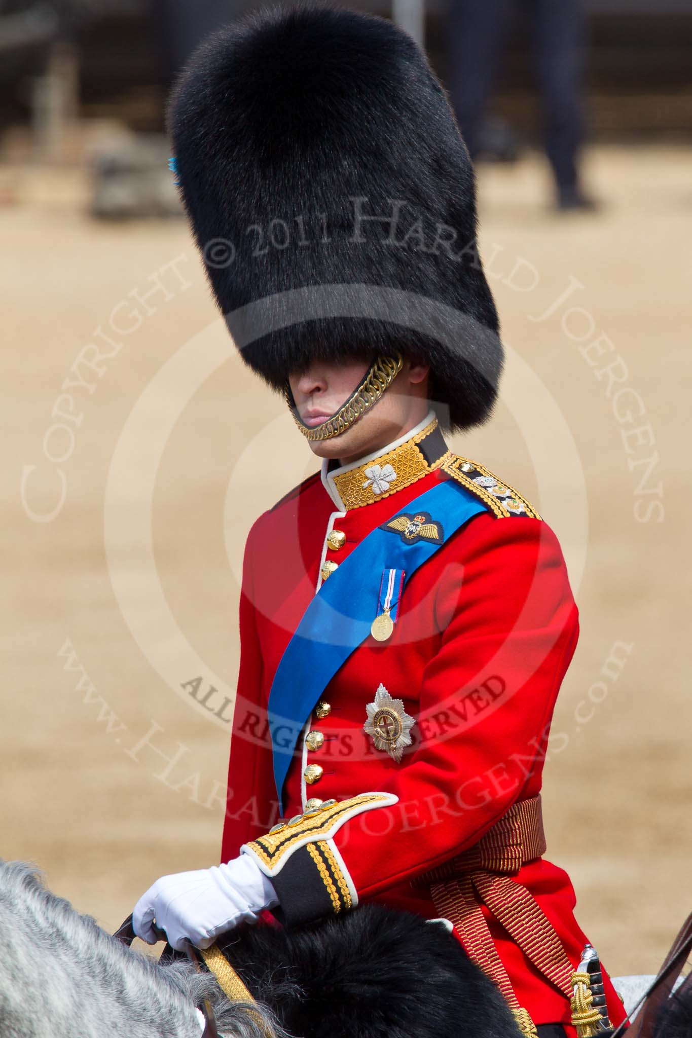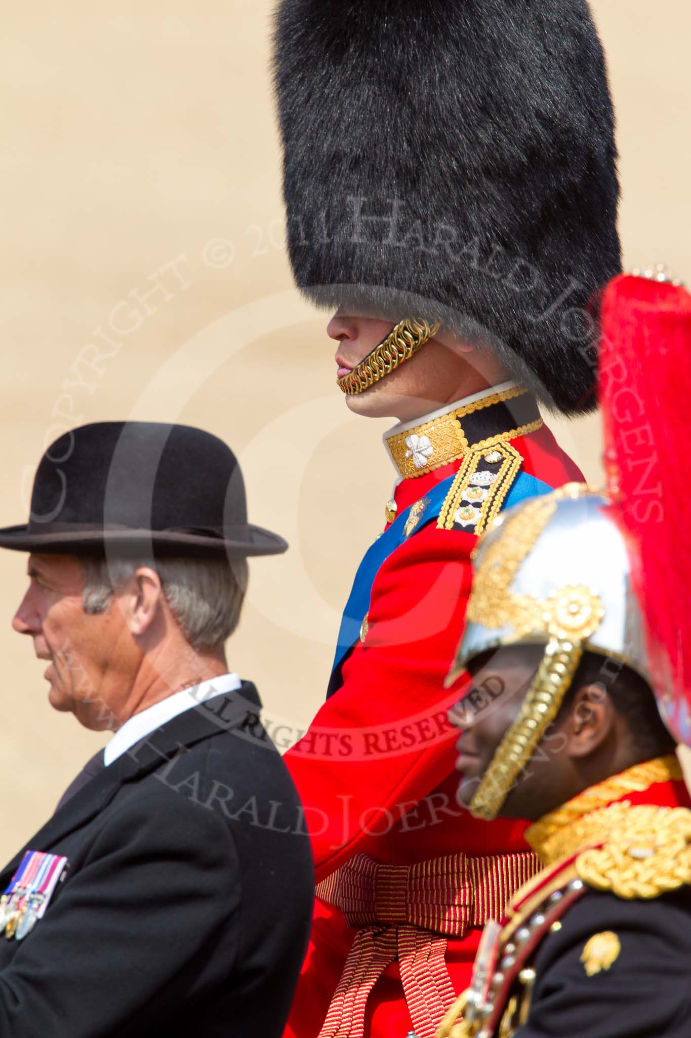The Colonel's Review 2011: Close-up of HRH Prince William, The Duke of Cambridge, Colonel Irish Guards, and the centre of media attention as it is his first time taking part in the parade as Royal Colonel.. Horse Guards Parade, Westminster, London SW1, United Kingdom, on 04 June 2011 at 10:59, image #82
