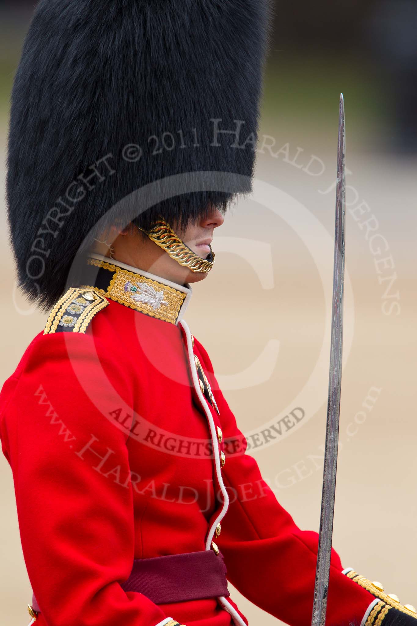 The Major General's Review 2011: Close-up of a Lieutenant from the Scots Guards.. Horse Guards Parade, Westminster, London SW1, Greater London, United Kingdom, on 28 May 2011 at 11:36, image #205