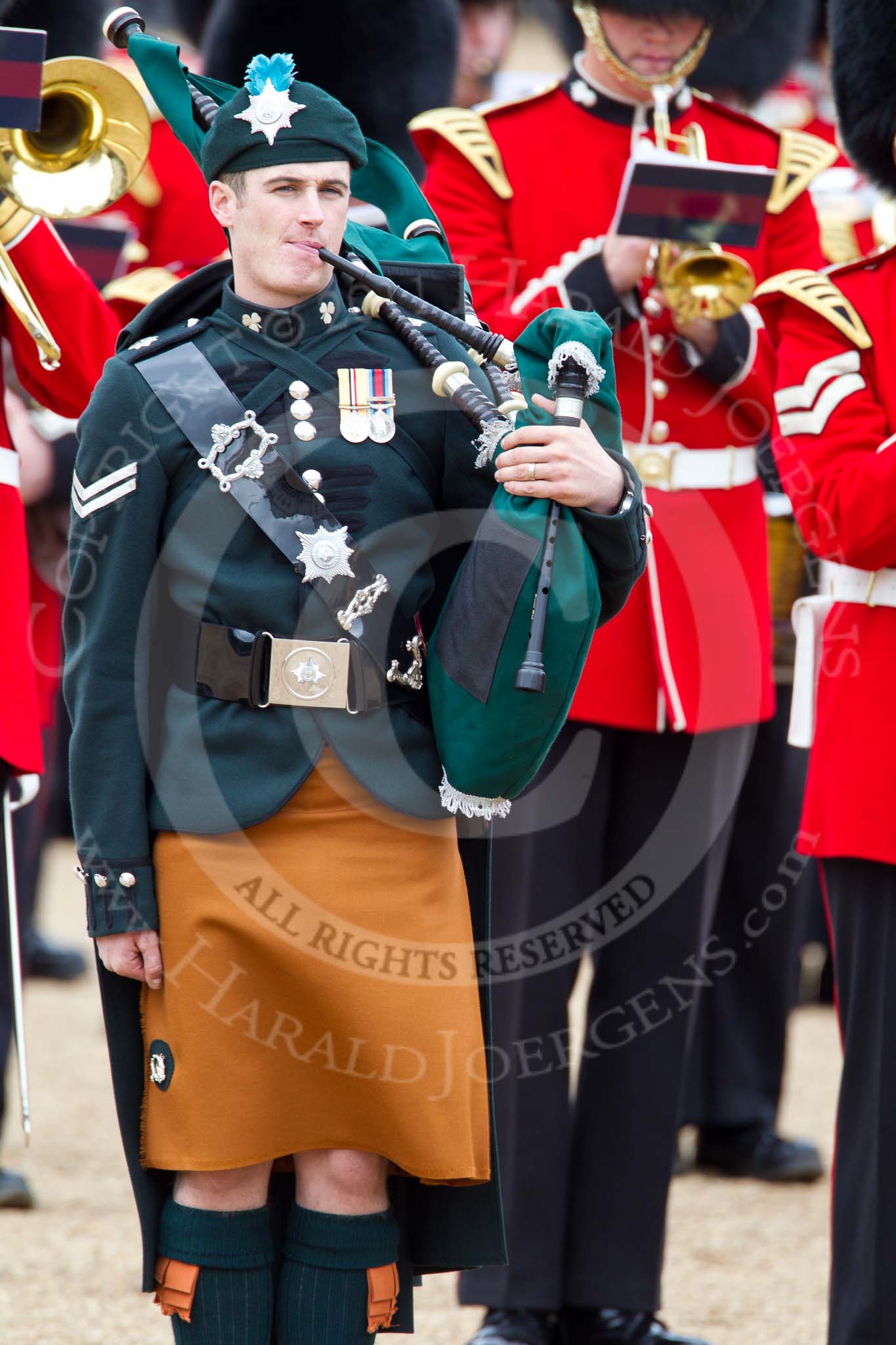 The Major General's Review 2011: An Irish Guards Piper.. Horse Guards Parade, Westminster, London SW1, Greater London, United Kingdom, on 28 May 2011 at 11:42, image #221