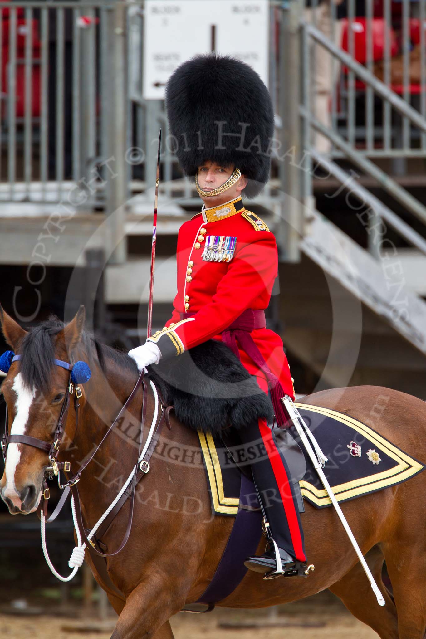 The Major General's Review 2011: The Field Office in Brigade Waiting, Lieutenant Colonel L P M Jopp, Scots Guards, riding 'Burniston'.. Horse Guards Parade, Westminster, London SW1, Greater London, United Kingdom, on 28 May 2011 at 11:43, image #223