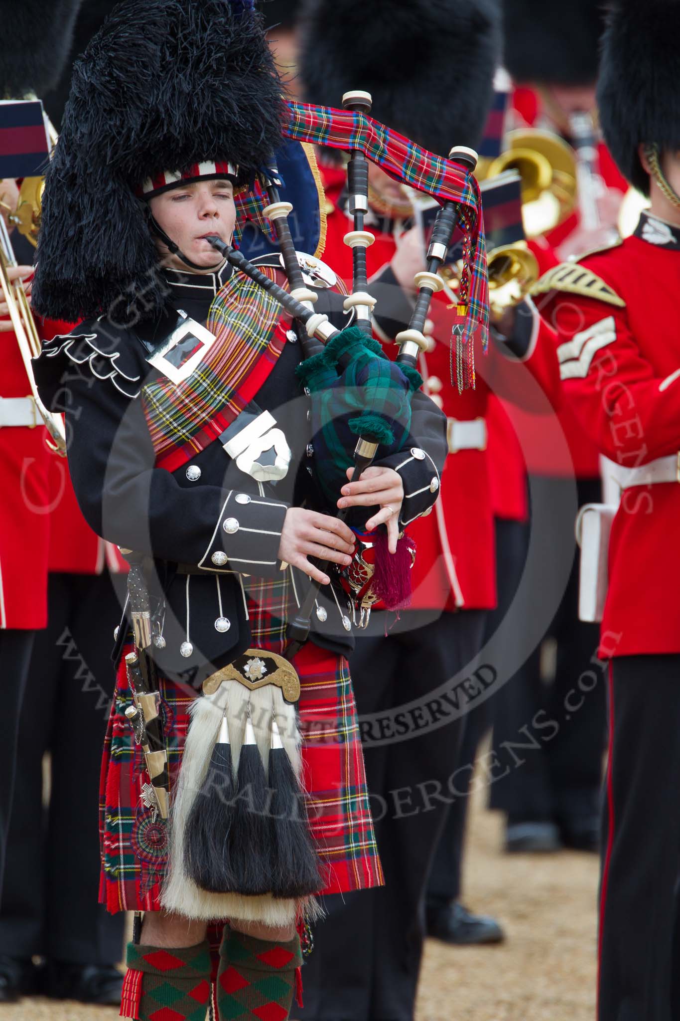 The Major General's Review 2011: A Piper of the Band of the Scots Guards.. Horse Guards Parade, Westminster, London SW1, Greater London, United Kingdom, on 28 May 2011 at 11:45, image #225