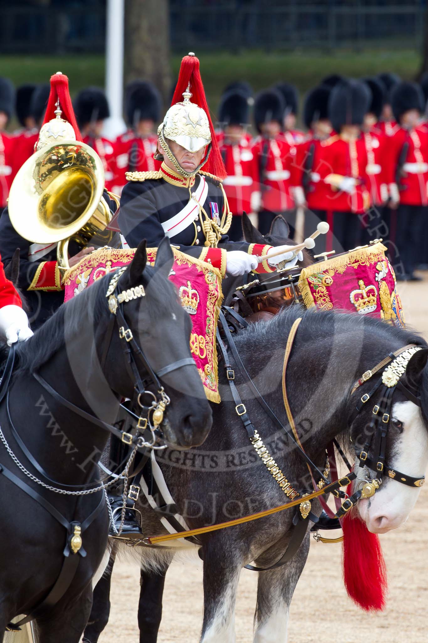 The Major General's Review 2011: The Band of the Blues and Royals, here the kettle drummer.. Horse Guards Parade, Westminster, London SW1, Greater London, United Kingdom, on 28 May 2011 at 11:54, image #241