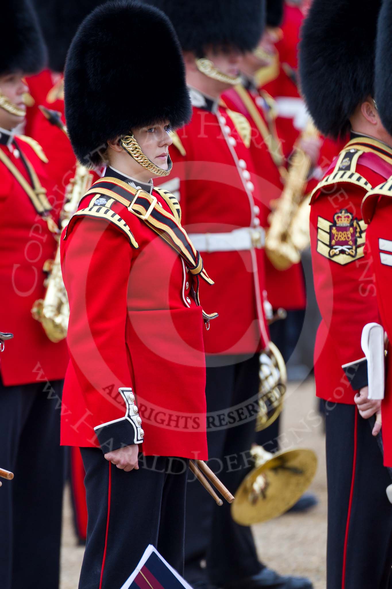 The Major General's Review 2011: Close-up of a Drummer of the Band of the Grenadier Guards.. Horse Guards Parade, Westminster, London SW1, Greater London, United Kingdom, on 28 May 2011 at 12:05, image #274
