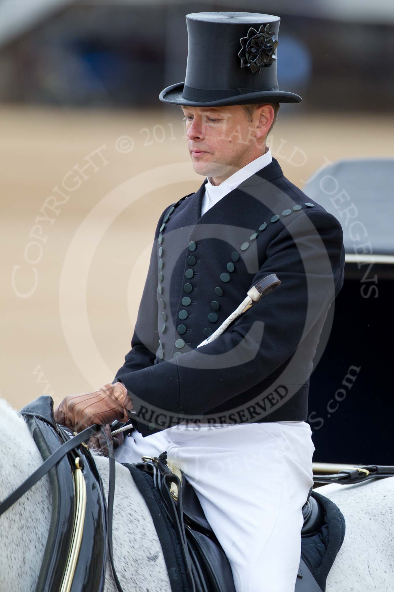 The Major General's Review 2011: Close-up of head coachman Jack Hargreaves.. Horse Guards Parade, Westminster, London SW1, Greater London, United Kingdom, on 28 May 2011 at 12:07, image #277