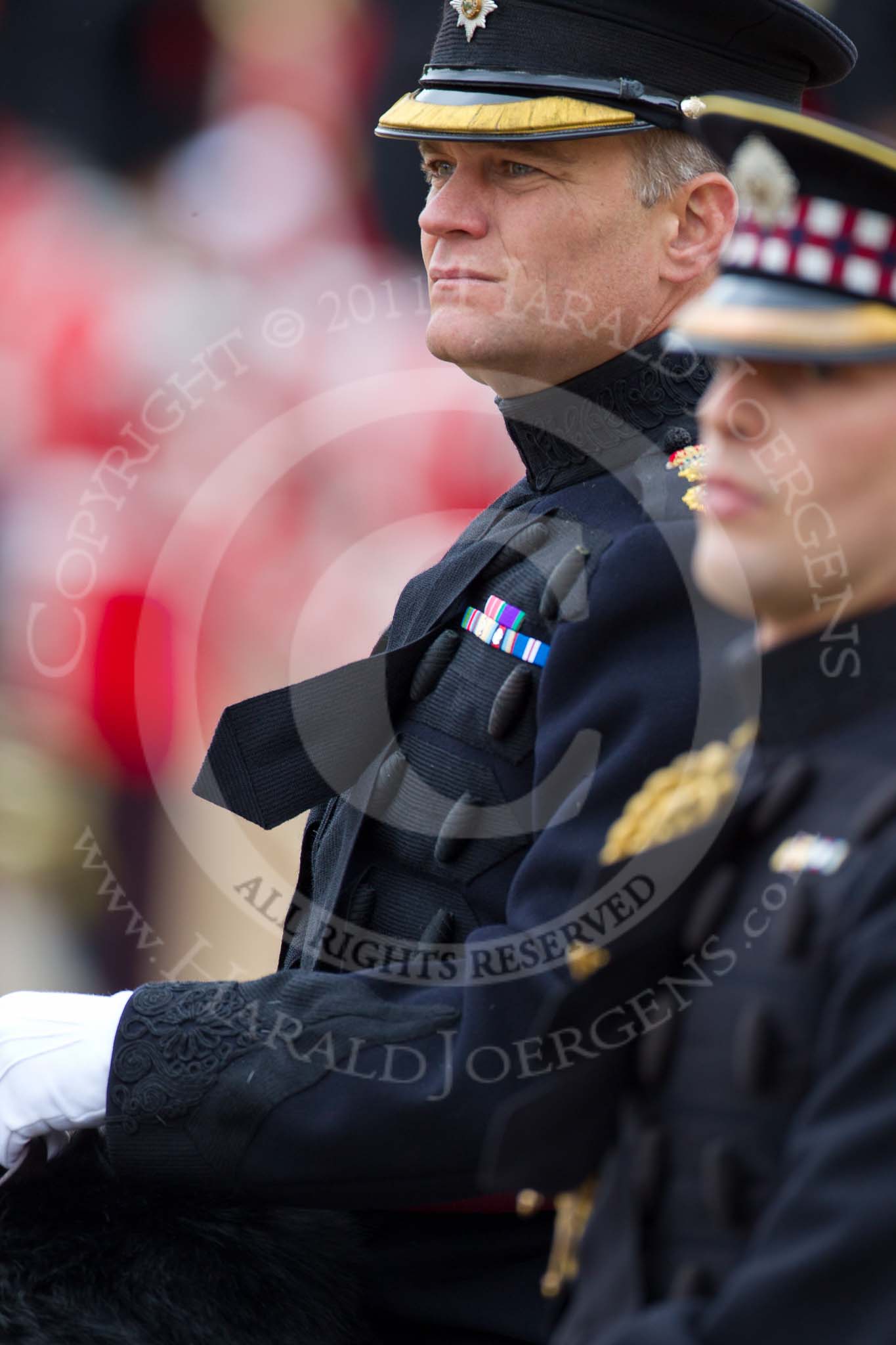 The Major General's Review 2011: Close-up of the Major General that does the Major General's Review - Major General Commanding the Household Division and General Officer Commanding London District, Major General W G Cubitt, here about to leave Horse Guards Parade during the March Off.. Horse Guards Parade, Westminster, London SW1, Greater London, United Kingdom, on 28 May 2011 at 12:08, image #279