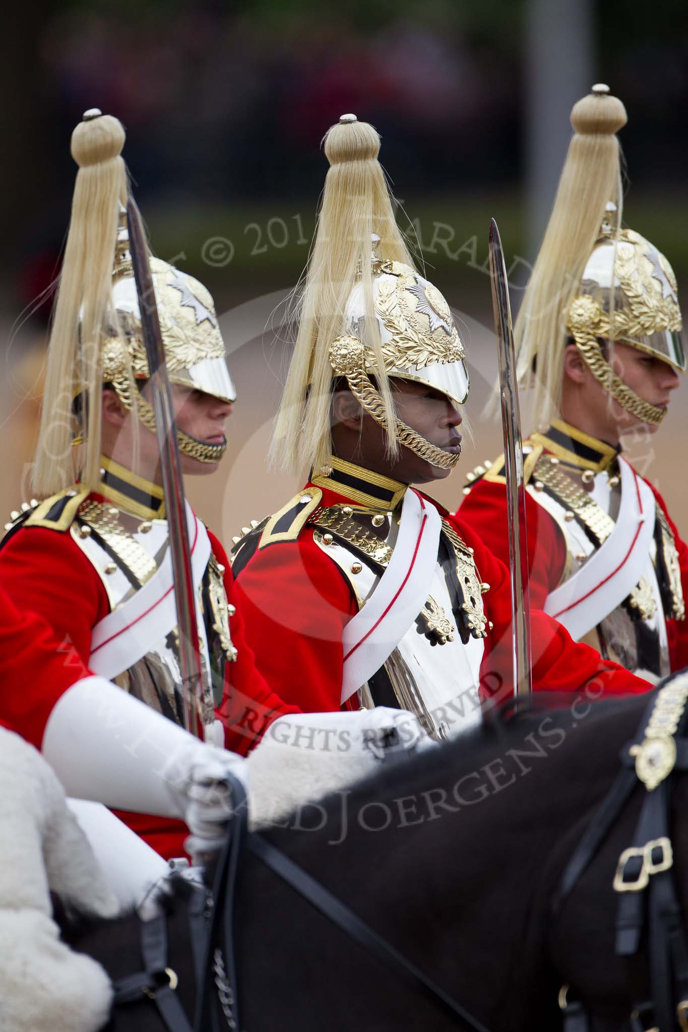 The Major General's Review 2011: Close-up of Troopers of The Life Guards in front of the Royal Procession.. Horse Guards Parade, Westminster, London SW1, Greater London, United Kingdom, on 28 May 2011 at 10:58, image #98