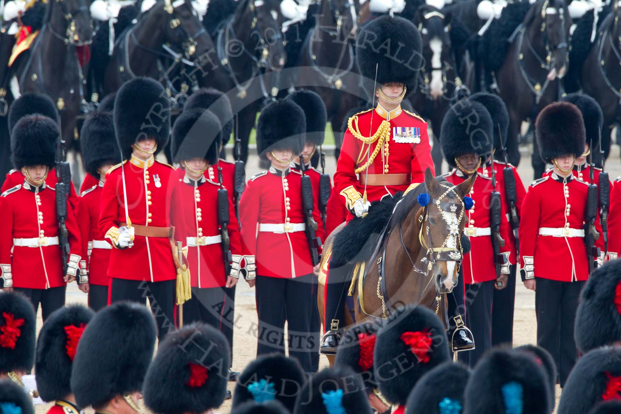 Trooping the Colour 2011: The Field Officer, Lieutenant Colonel Lincoln P M Jopp, behind him No. 2 Guard, B Company Scots Guards.. Horse Guards Parade, Westminster, London SW1, Greater London, United Kingdom, on 11 June 2011 at 11:20, image #201