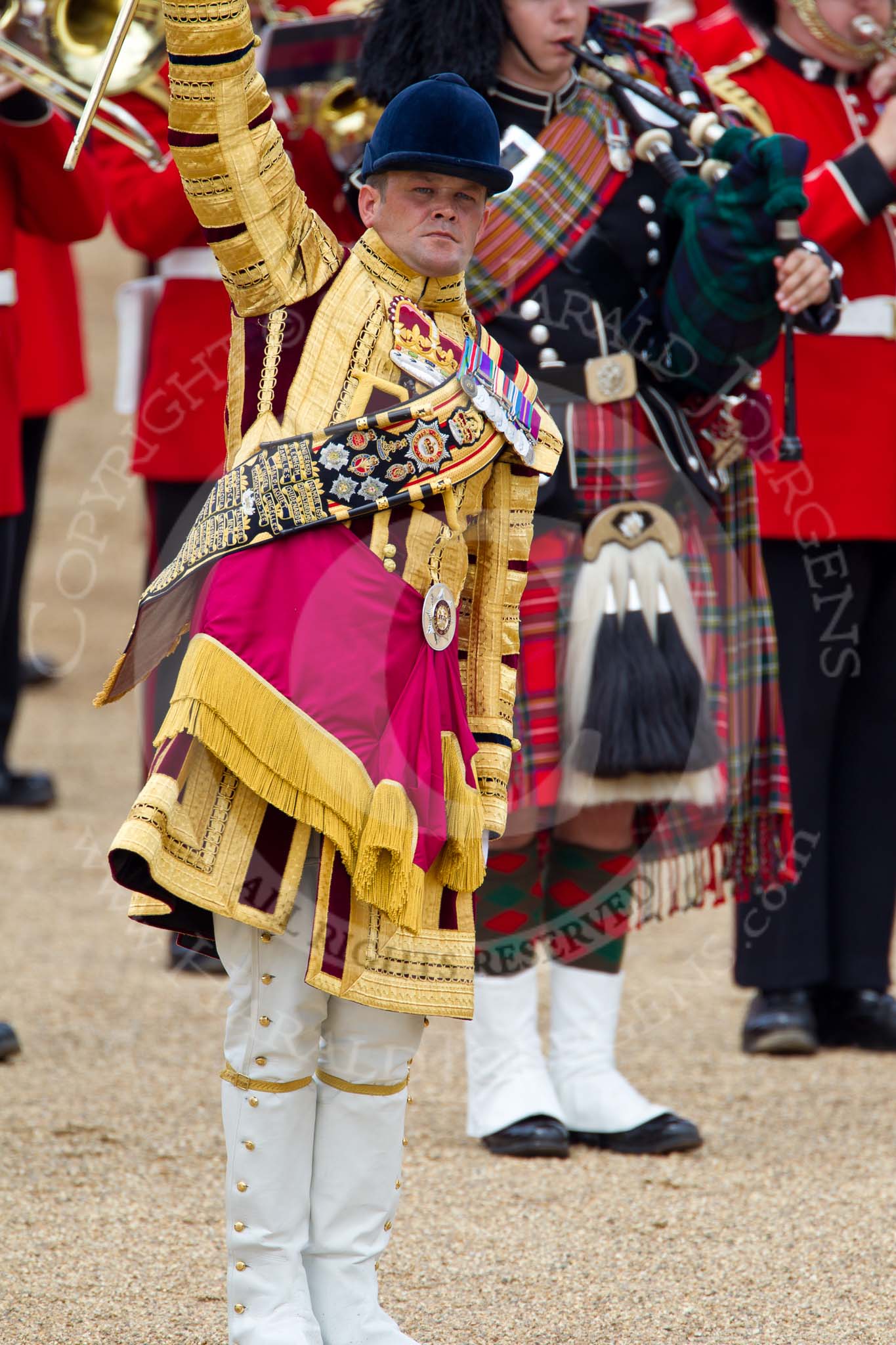 Trooping the Colour 2011: Drum Major Alan Harvey, Irish Guards, leading the Band of the Scots Guards.. Horse Guards Parade, Westminster, London SW1, Greater London, United Kingdom, on 11 June 2011 at 11:49, image #297