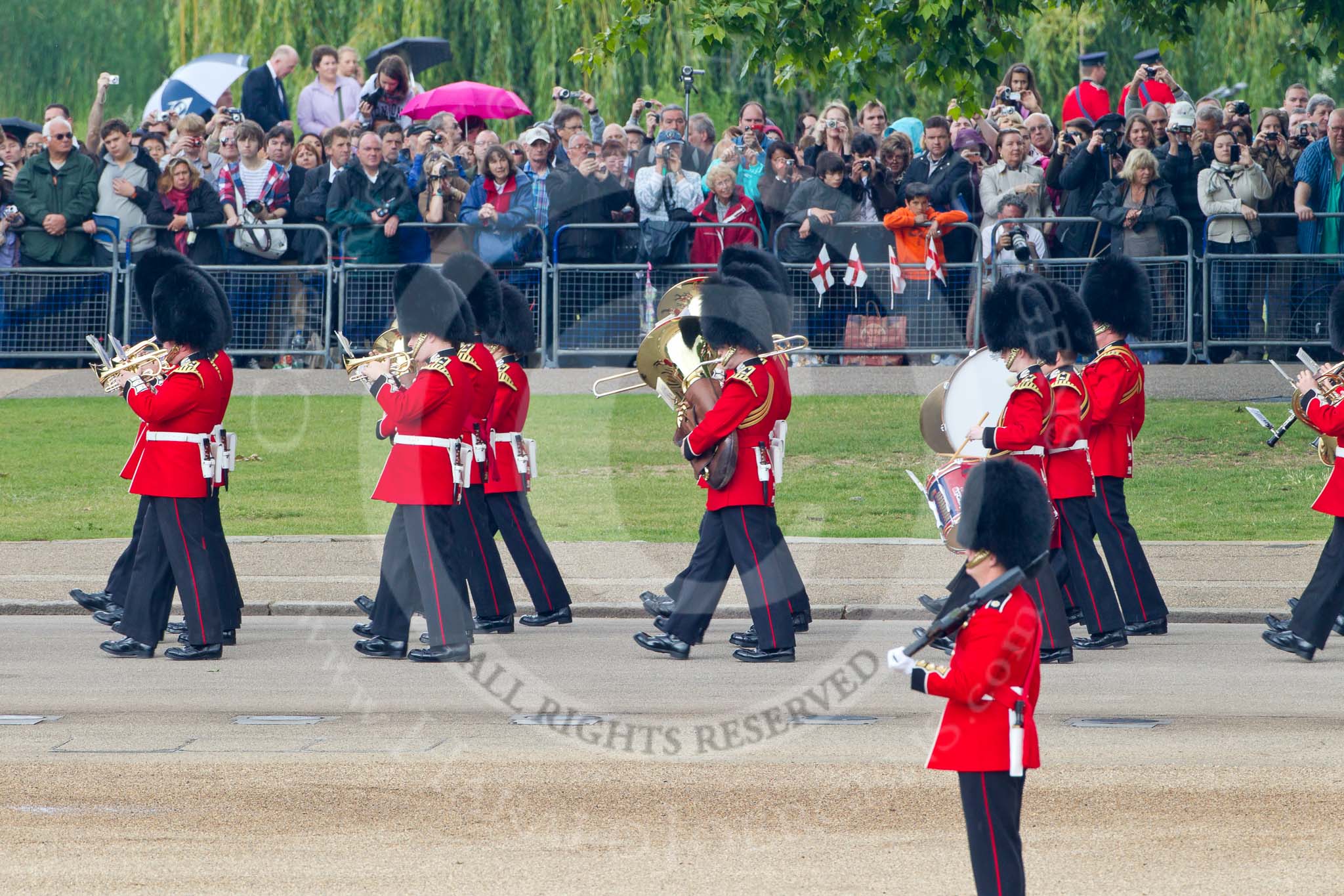 Trooping the Colour 2011: The Band of the Scots Guards, marching on Horse Guards Road, before turning onto Horse Guards Parade.. Horse Guards Parade, Westminster, London SW1, Greater London, United Kingdom, on 11 June 2011 at 10:30, image #47