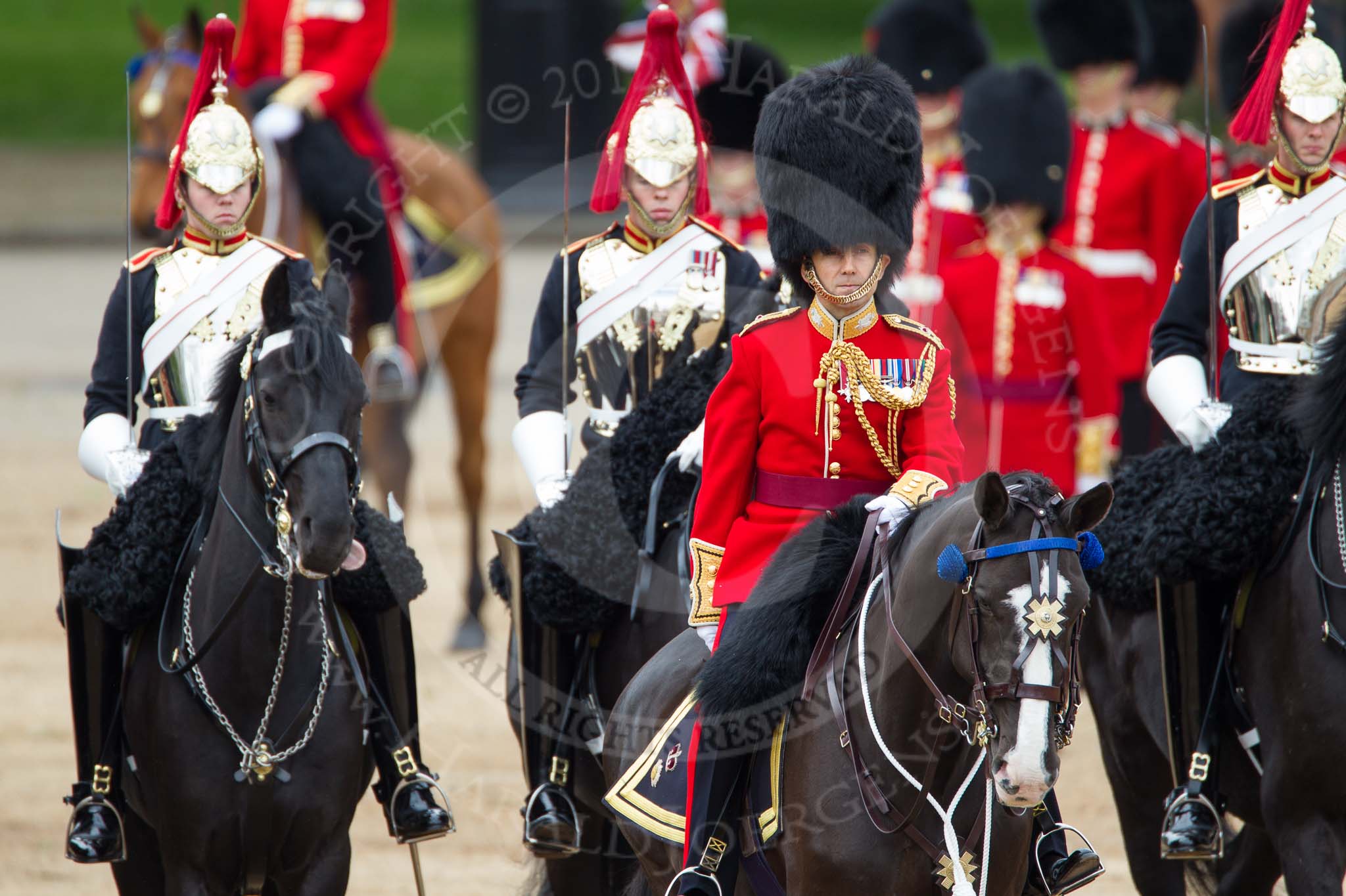 The Colonel's Review 2012: Aide-de-Camp Captain F A O Kuku, Grenadier Guards, Chief of Staff Colonel R H W St G Bodington, Welsh Guards, Silver-Stick-in-Waiting, Colonel S H Cowen, The Blues and Royals (Royal Horse Guards and 1st Dragoons).. Horse Guards Parade, Westminster, London SW1, United Kingdom, on 09 June 2012 at 11:02, image #183