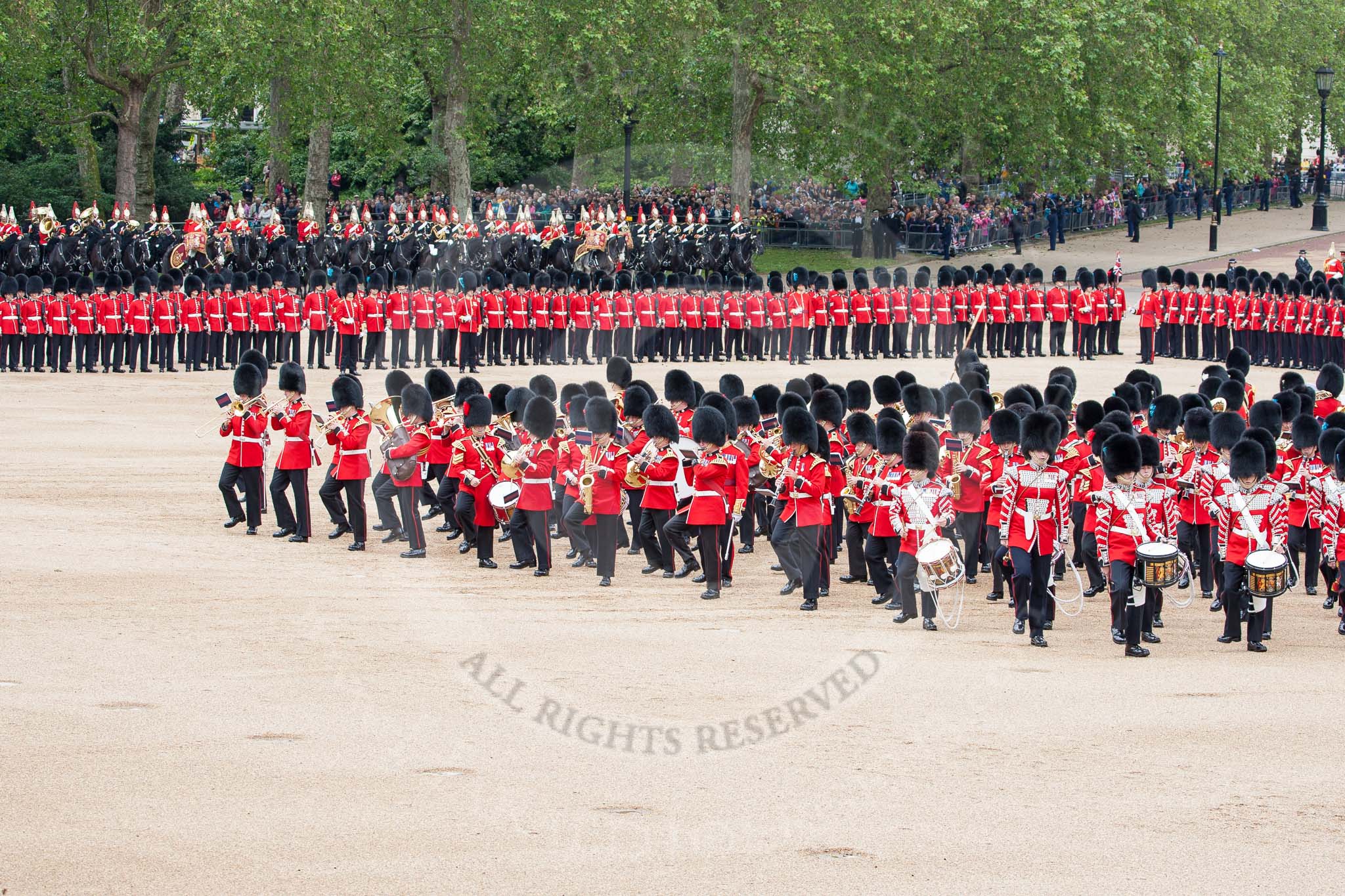 The Colonel's Review 2012: The Collection of the Colour, Massed Bands marching.. Horse Guards Parade, Westminster, London SW1, United Kingdom, on 09 June 2012 at 11:14, image #251