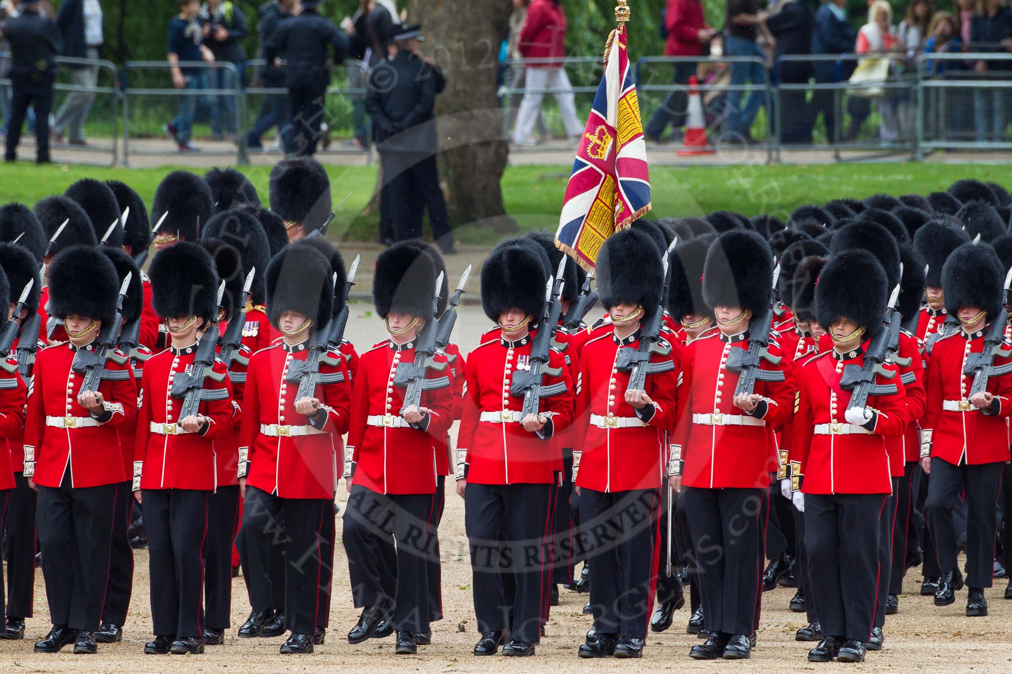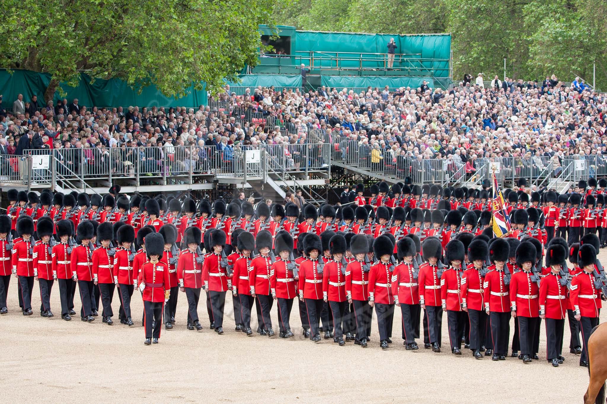The Colonel's Review 2012: No. 1 Guard, the (Escort for the Colour), 1st Battalion Coldstream Guards, marching behind No. 2 Guard.. Horse Guards Parade, Westminster, London SW1, United Kingdom, on 09 June 2012 at 11:30, image #305
