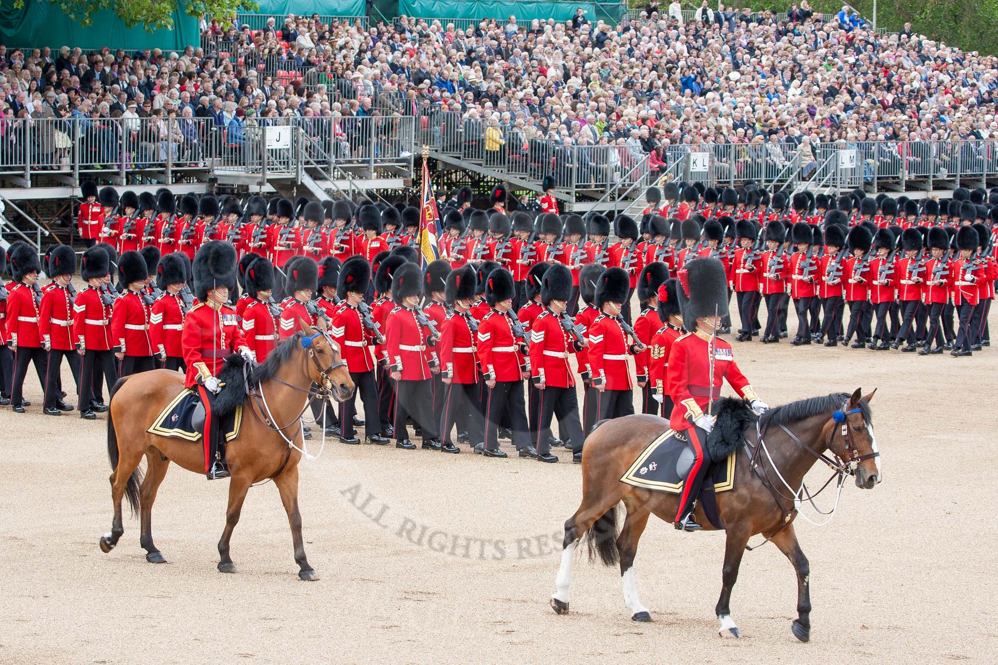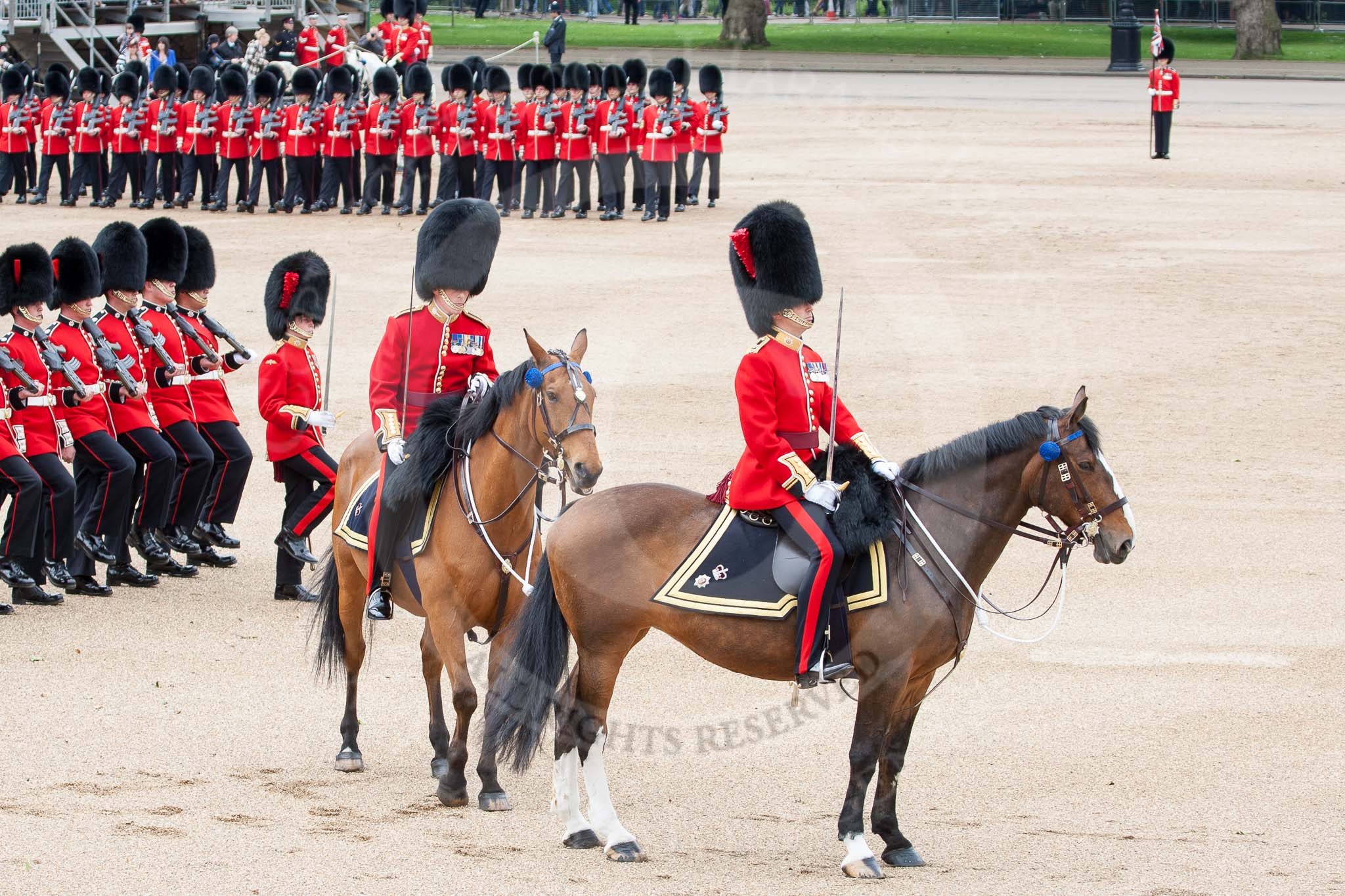 The Colonel's Review 2012: The Field Officer in Brigade Waiting, Lieutenant Colonel R C N Sergeant, Coldstream Guards, and the Major of the Parade, Major Mark Lewis, Welsh Guards.. Horse Guards Parade, Westminster, London SW1, United Kingdom, on 09 June 2012 at 11:33, image #315