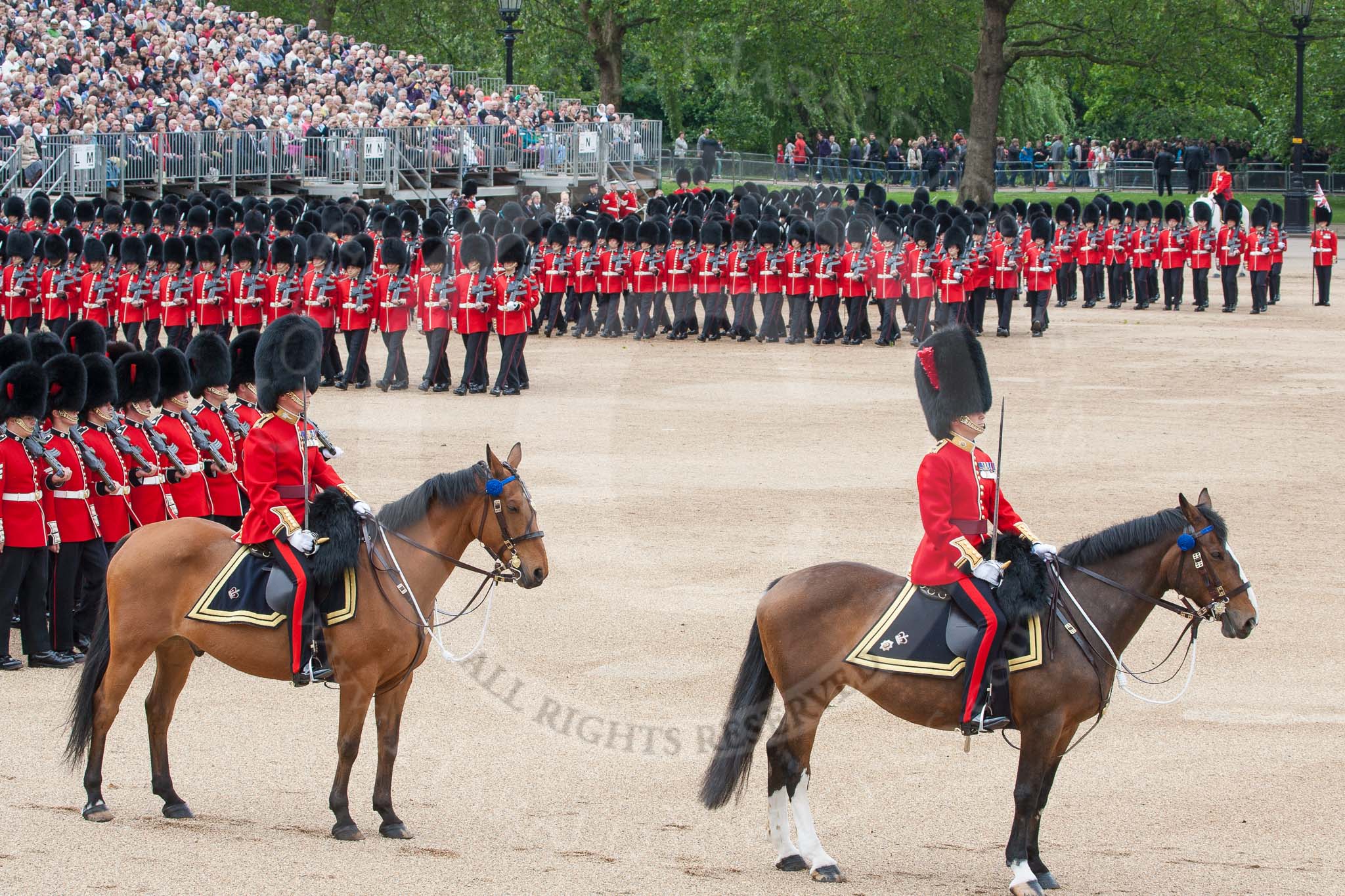 The Colonel's Review 2012: During the March Past. In front the Field Officer, followed by the Major of the Parade.. Horse Guards Parade, Westminster, London SW1, United Kingdom, on 09 June 2012 at 11:32, image #312