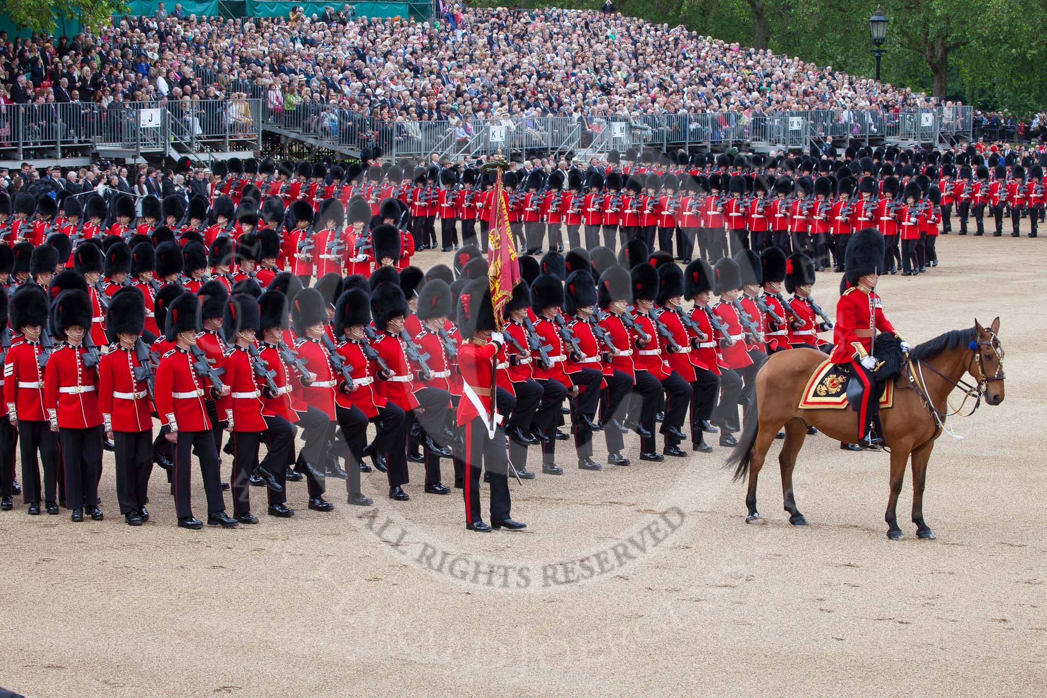 Trooping the Colour 2012: About to march past Her Majesty - the Major of the Parade, Major Mark Lewis, Welsh Guards, the Ensign, carrying the Colour, and the guards divisions.. Horse Guards Parade, Westminster, London SW1, United Kingdom, on 16 June 2012 at 11:35, image #409