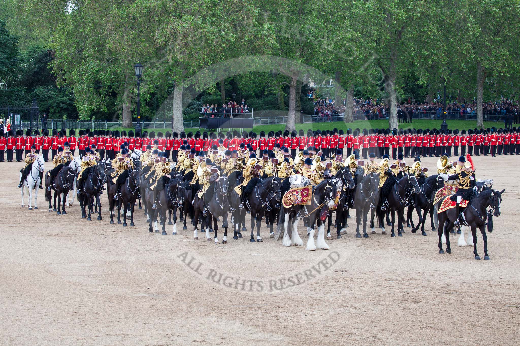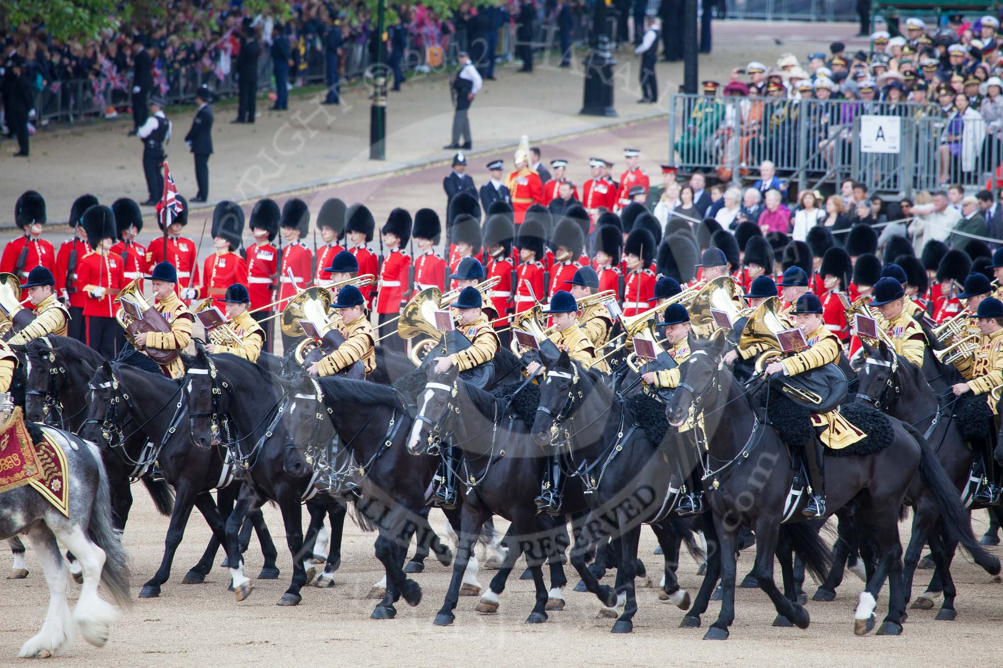 Trooping the Colour 2012: The Mounted Bands of the Household Cavalry playing during the Ride Past.. Horse Guards Parade, Westminster, London SW1, United Kingdom, on 16 June 2012 at 11:54, image #536