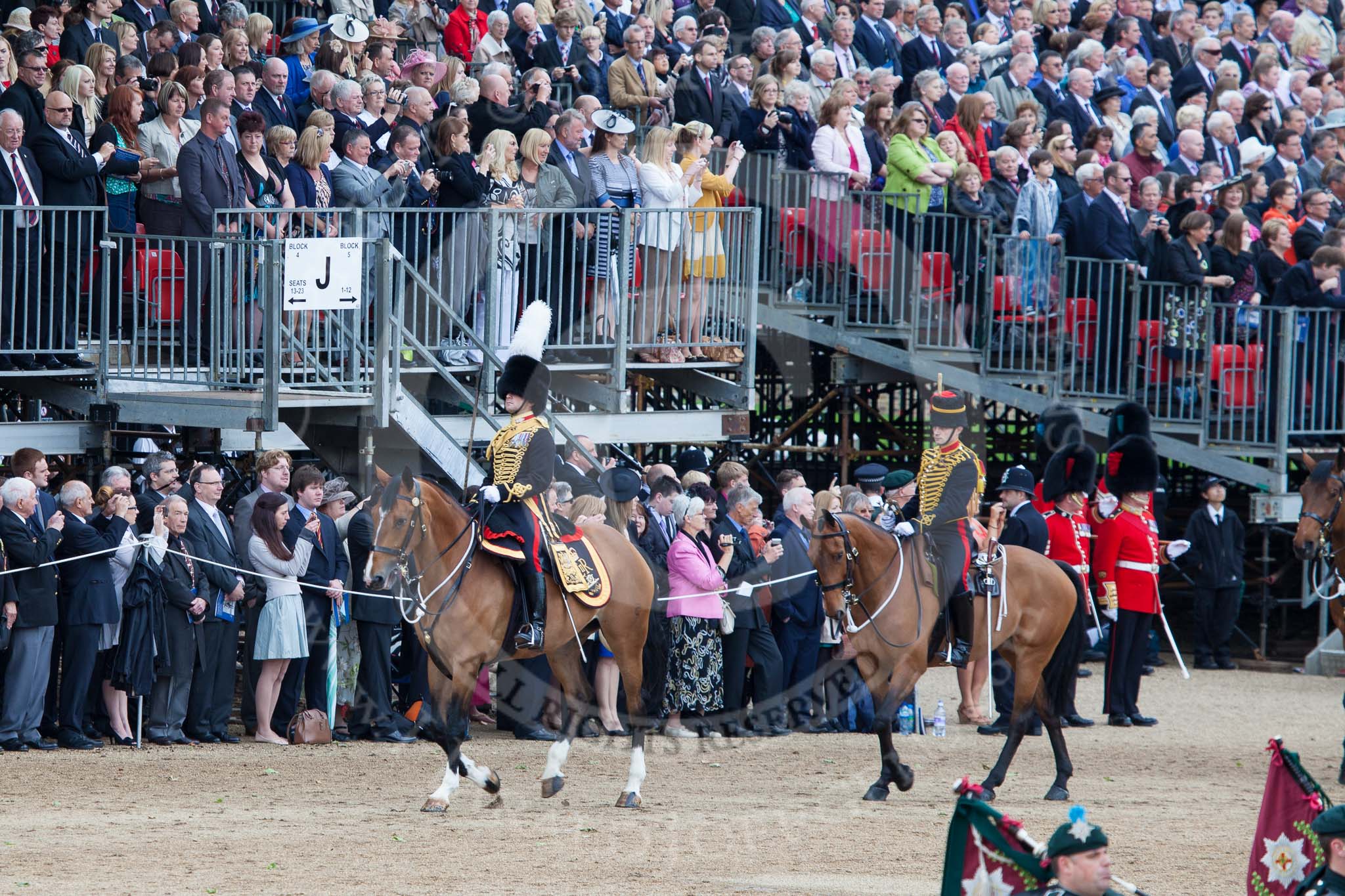 Trooping the Colour 2012: The Ride Past - the Director of Music, Captain J Griffiths, The Blues and Royals, and the kettle drummer from The Life Guards.. Horse Guards Parade, Westminster, London SW1, United Kingdom, on 16 June 2012 at 11:54, image #538