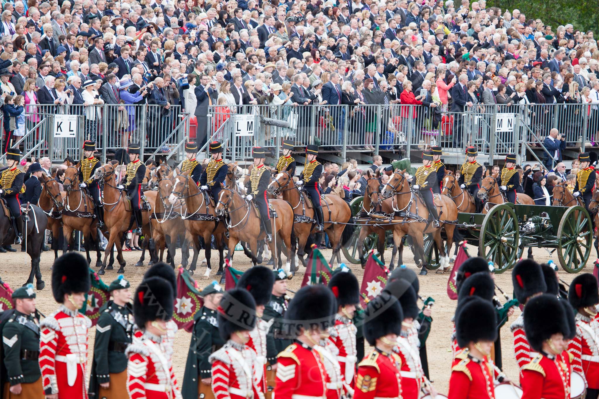 Trooping the Colour 2012: At the beginning of the Ride Past, the The King’s Troop Royal Horse Artillery moves, past the line of guardsmen, onto Horse Guards Parade.. Horse Guards Parade, Westminster, London SW1, United Kingdom, on 16 June 2012 at 11:53, image #529