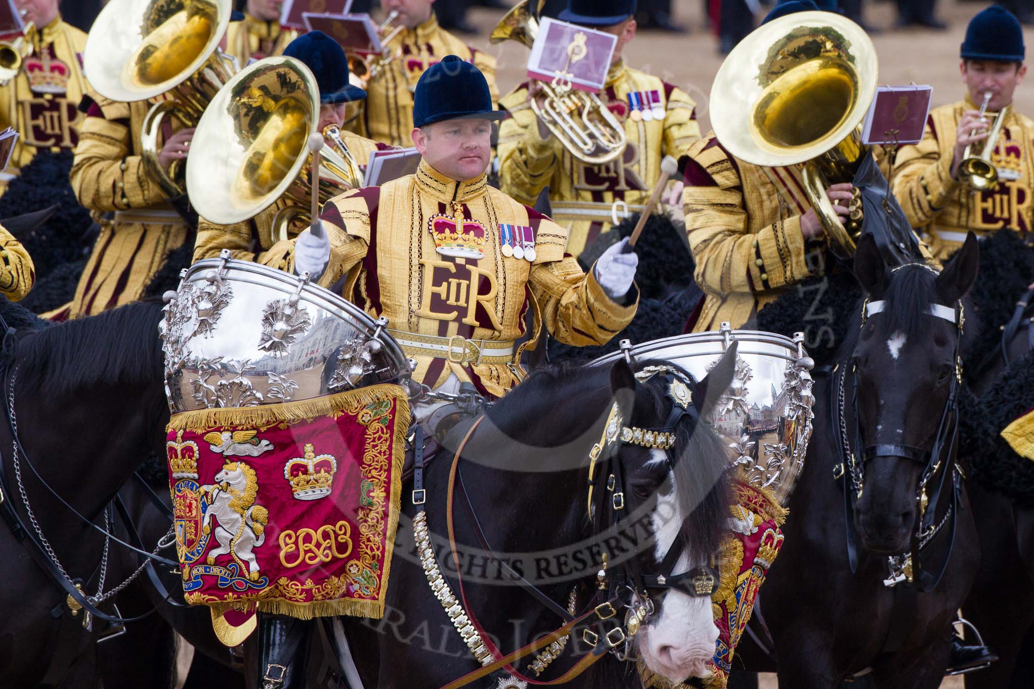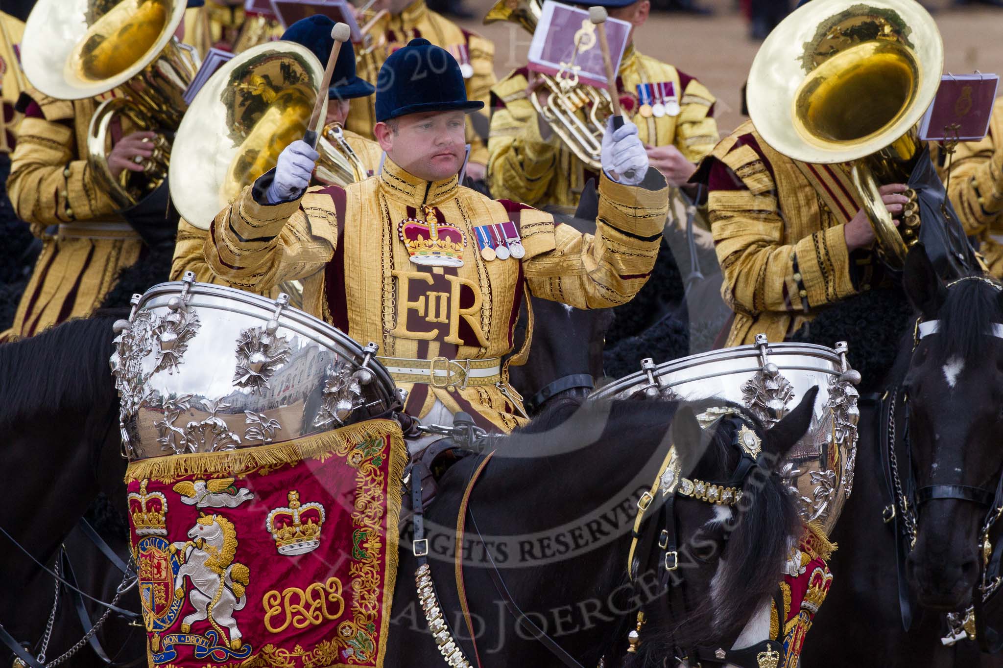 Trooping the Colour 2012: The Kettle Drummer from The Life Guards during the Ride Past.. Horse Guards Parade, Westminster, London SW1, United Kingdom, on 16 June 2012 at 11:57, image #574