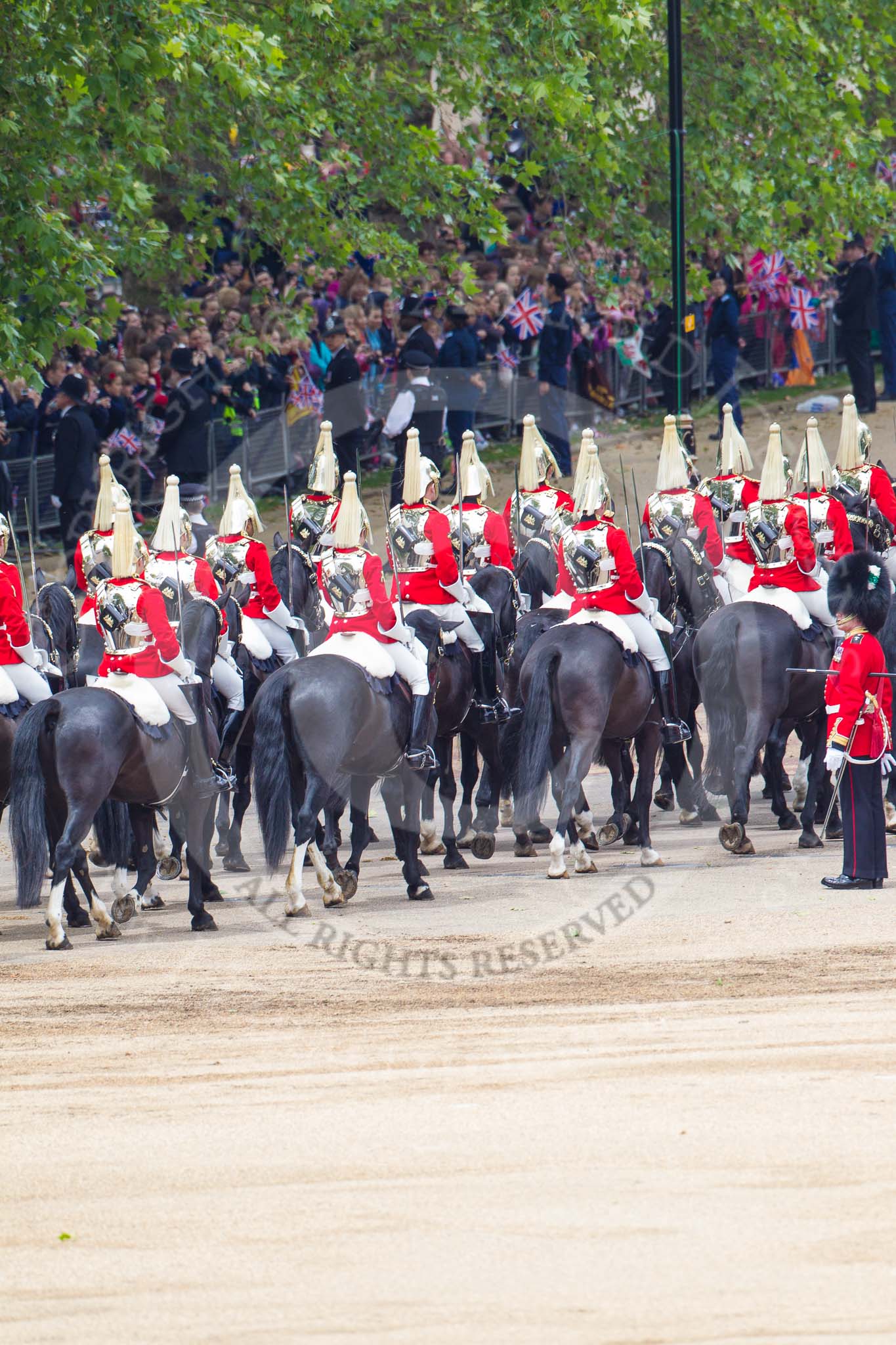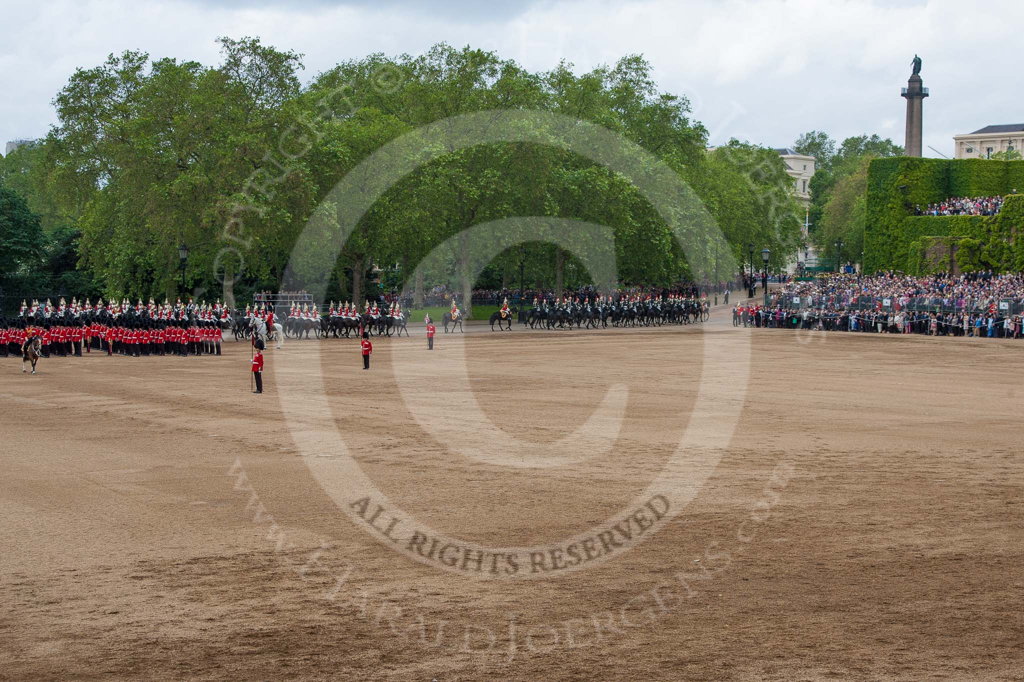 Trooping the Colour 2012: Ready for the March Off - The Blues and Royals are riding towards the access road to The Mall, The Life Guards are starting to follow.. Horse Guards Parade, Westminster, London SW1, United Kingdom, on 16 June 2012 at 12:07, image #631