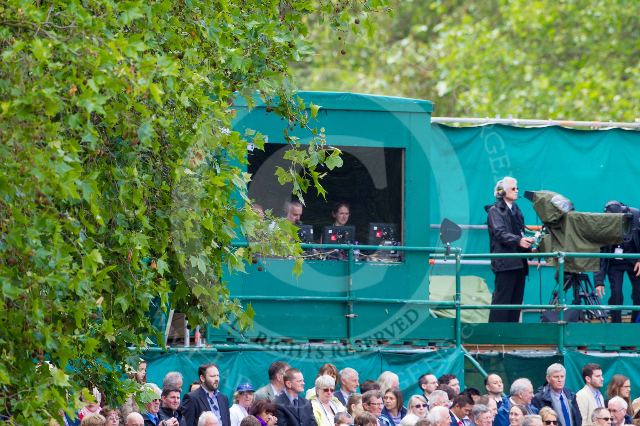 Trooping the Colour 2012: The BBC crew at the live broadcast, on the left Huw Edwards with his team.. Horse Guards Parade, Westminster, London SW1, United Kingdom, on 16 June 2012 at 12:14, image #691