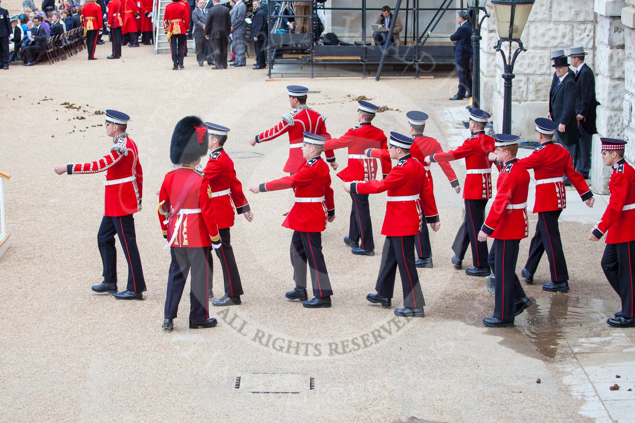 Trooping the Colour 2012: About to tidy up Horse Guards Parade after the event - guardsmen from the Coldstream Guards.. Horse Guards Parade, Westminster, London SW1, United Kingdom, on 16 June 2012 at 12:16, image #696