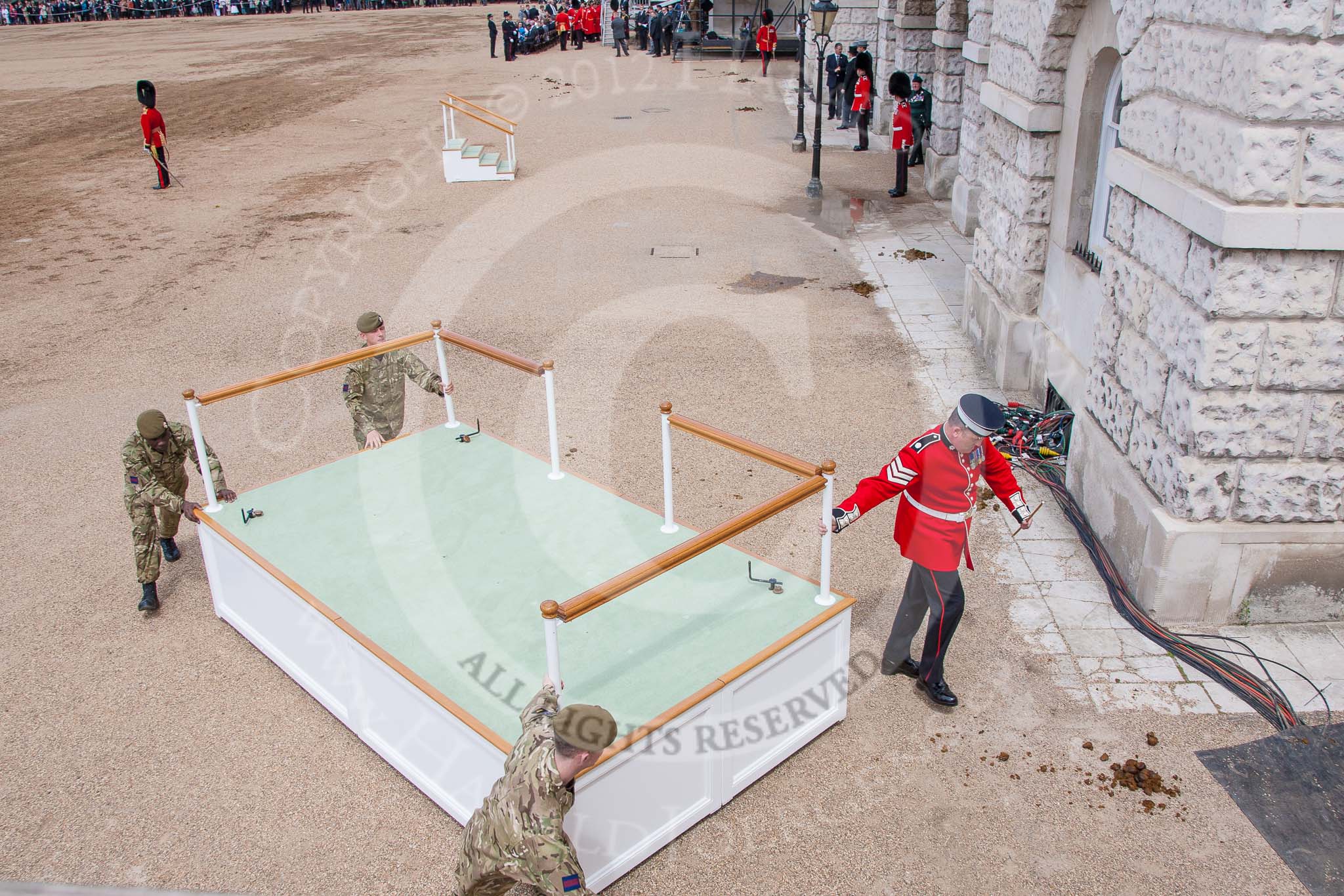 Trooping the Colour 2012: After the parade - the saluting base is rolled away.. Horse Guards Parade, Westminster, London SW1, United Kingdom, on 16 June 2012 at 12:18, image #699