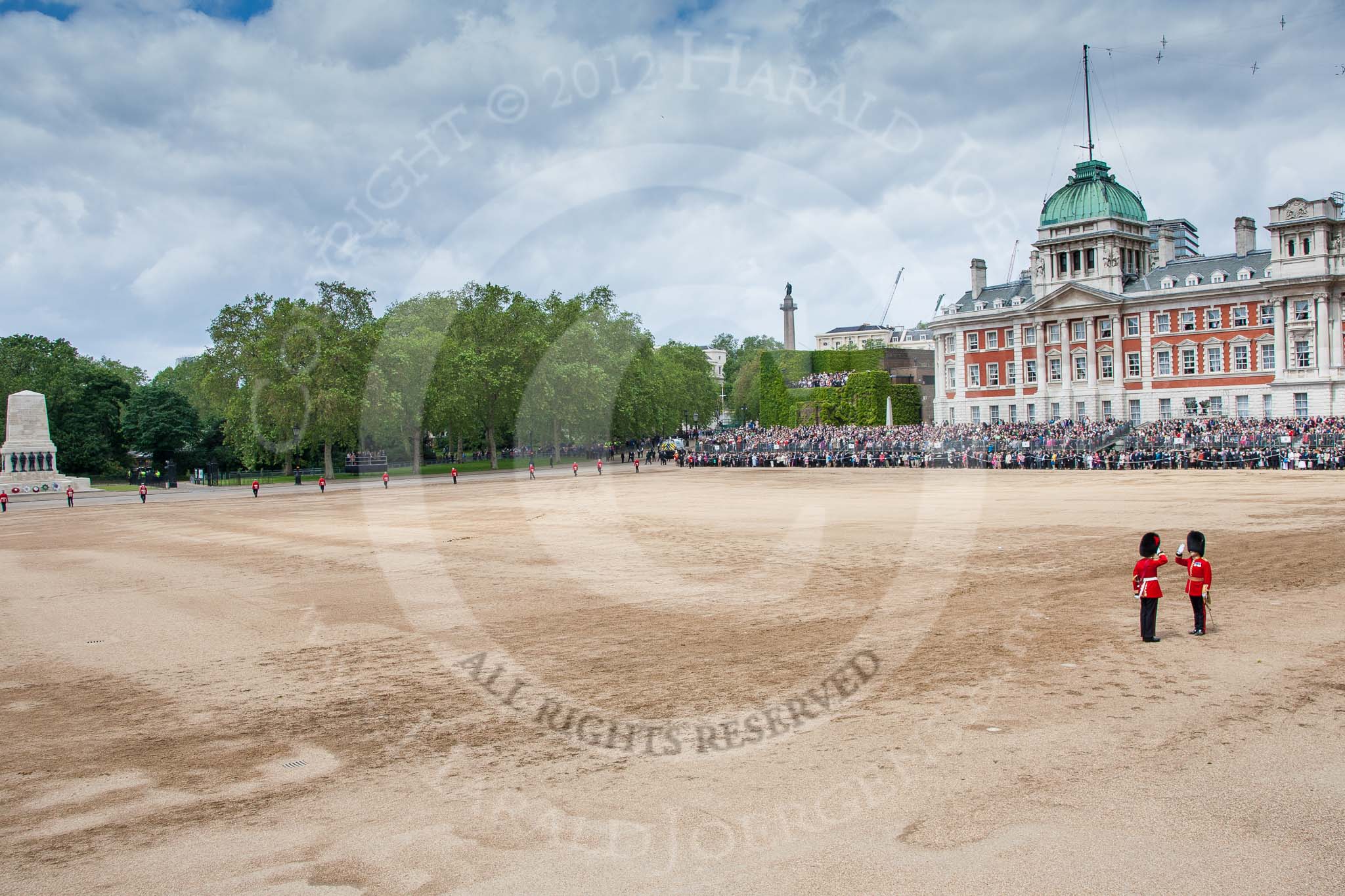Trooping the Colour 2012: After the parade - an overview of Horse Guards Parade.. Horse Guards Parade, Westminster, London SW1, United Kingdom, on 16 June 2012 at 12:17, image #698