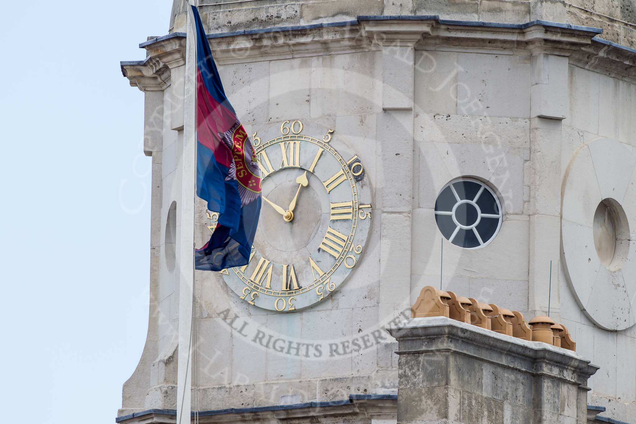 Trooping the Colour 2012: After the parade, waiting for the flypast - the clock tower on Horse Guards Building.. Horse Guards Parade, Westminster, London SW1, United Kingdom, on 16 June 2012 at 12:50, image #703