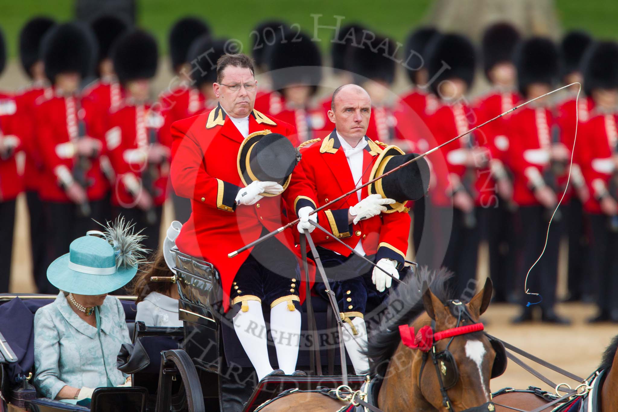 Trooping the Colour 2012: The coachmen of the first carriage saluting the Colour..
