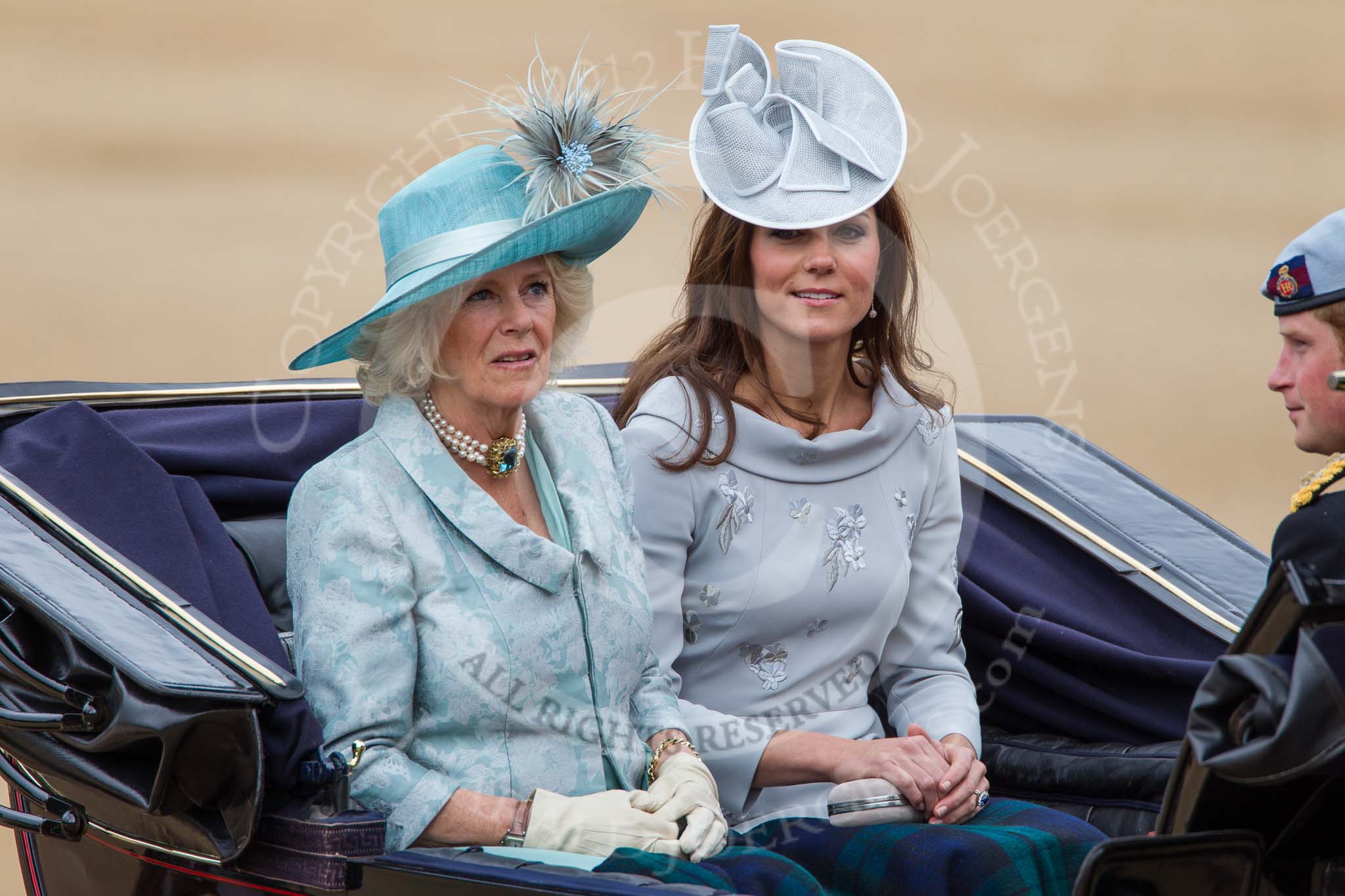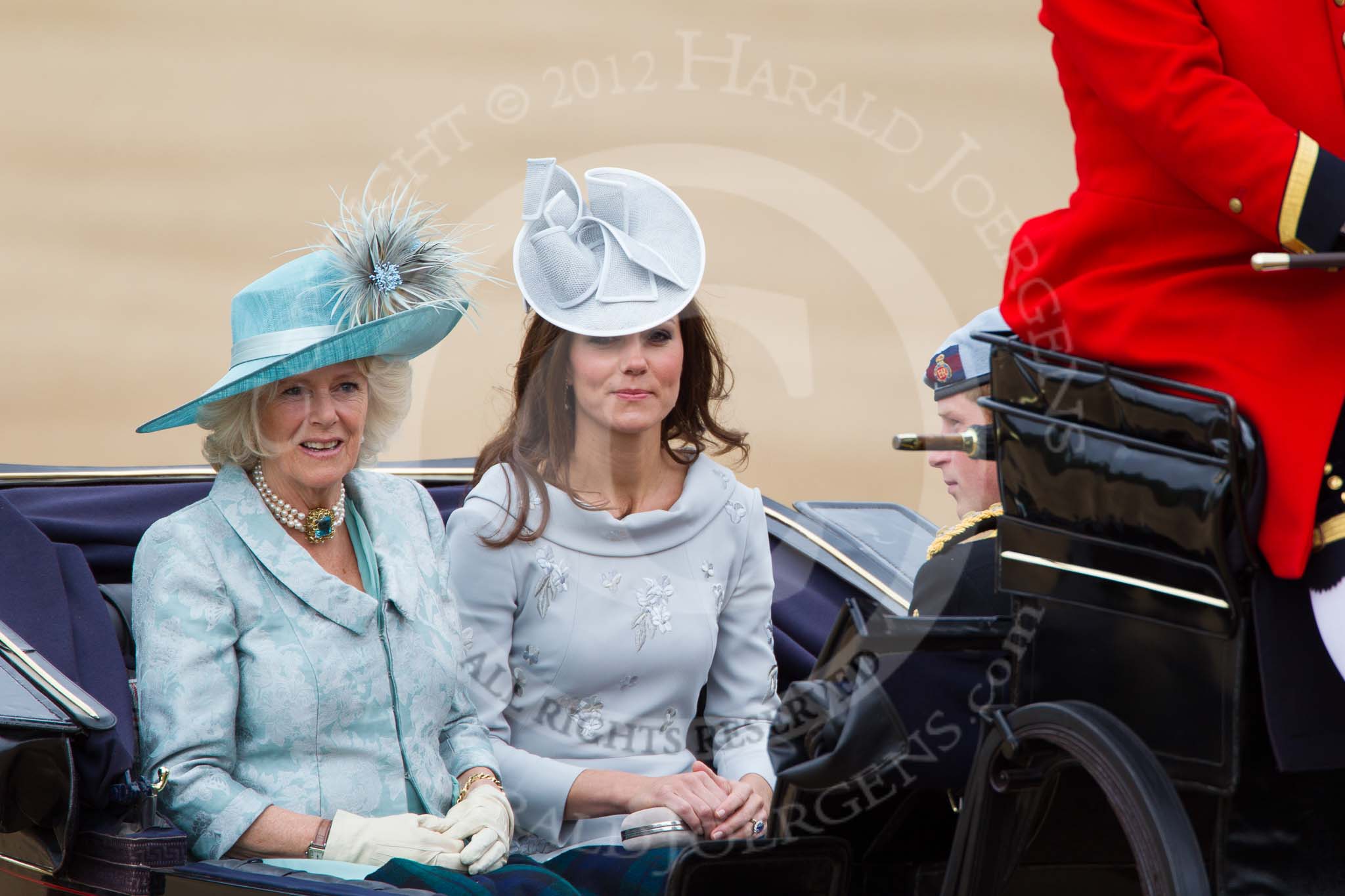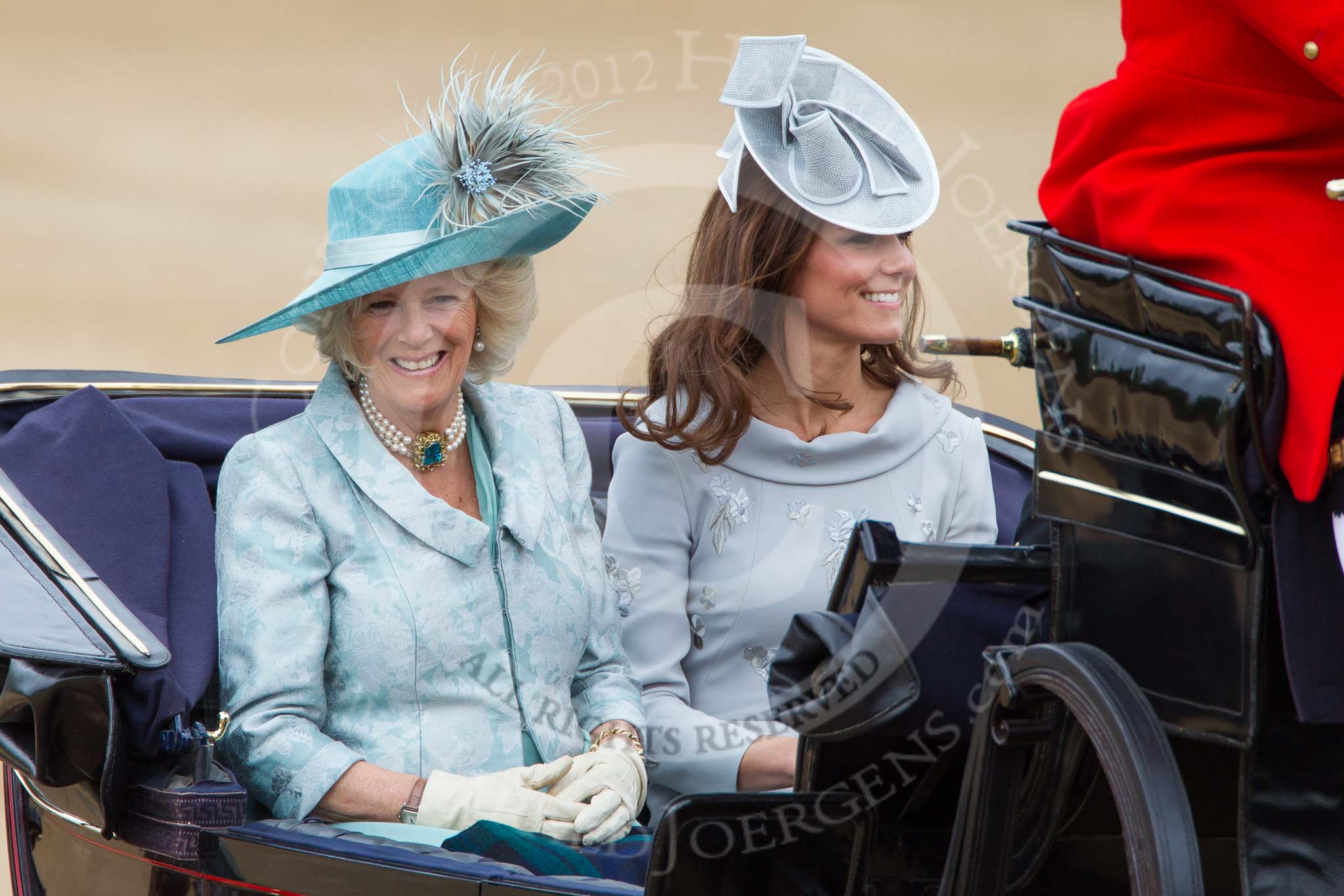 Trooping the Colour 2012: The Duchess of Cornwall and the Duchess of Cambridge in the first carriage..