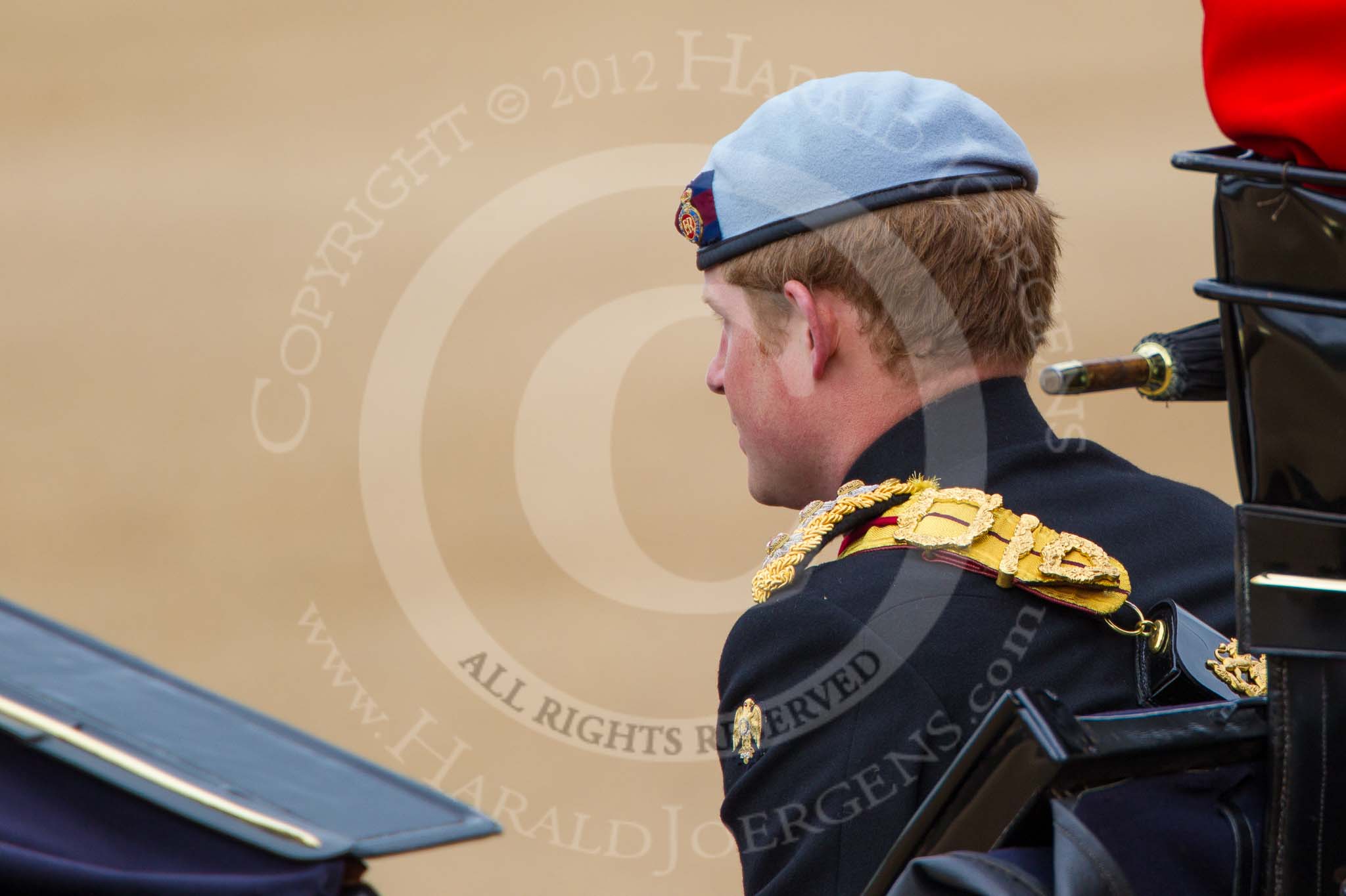 Trooping the Colour 2012: A close-up view of Prince Harry in the first carriage..