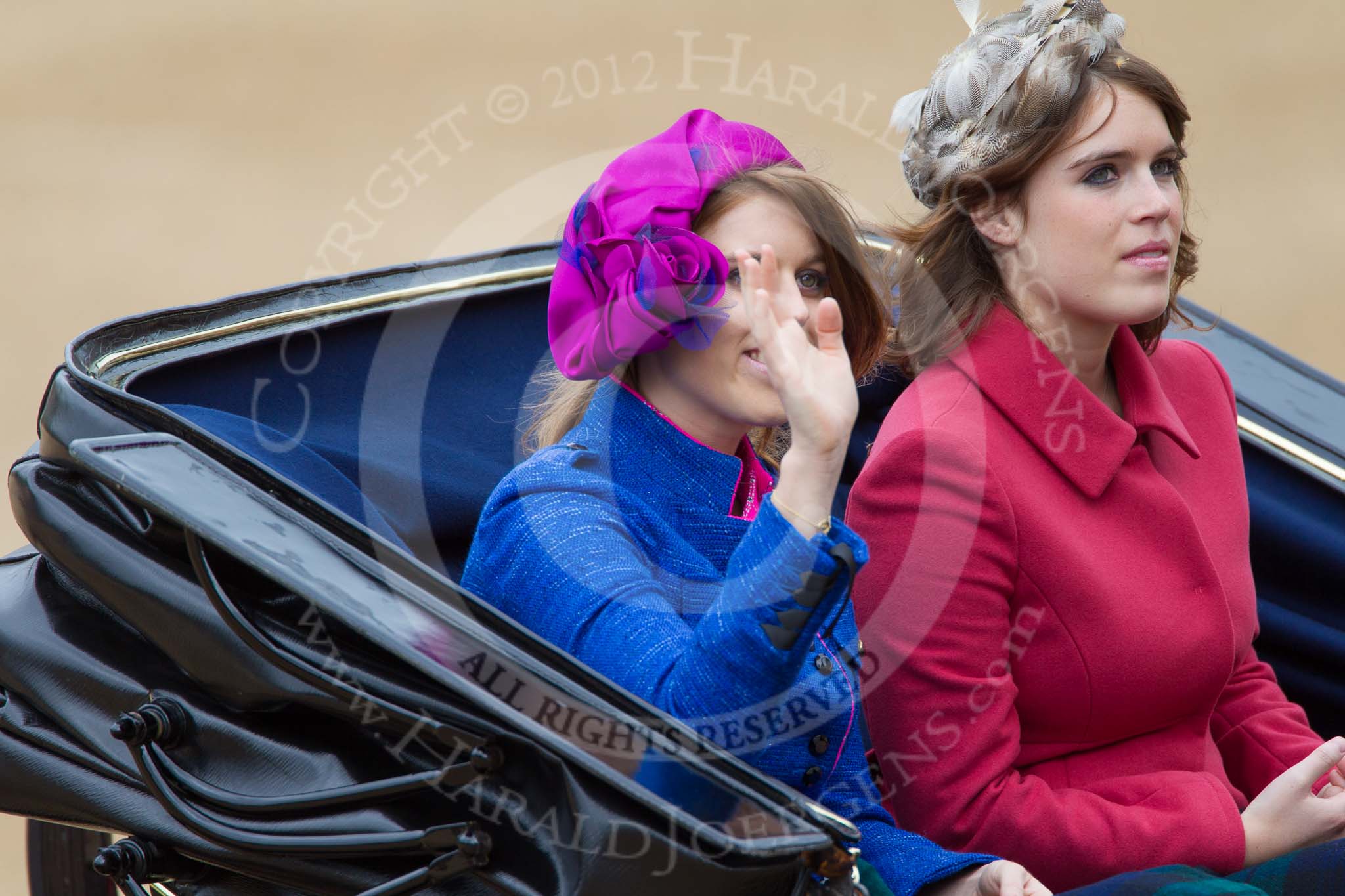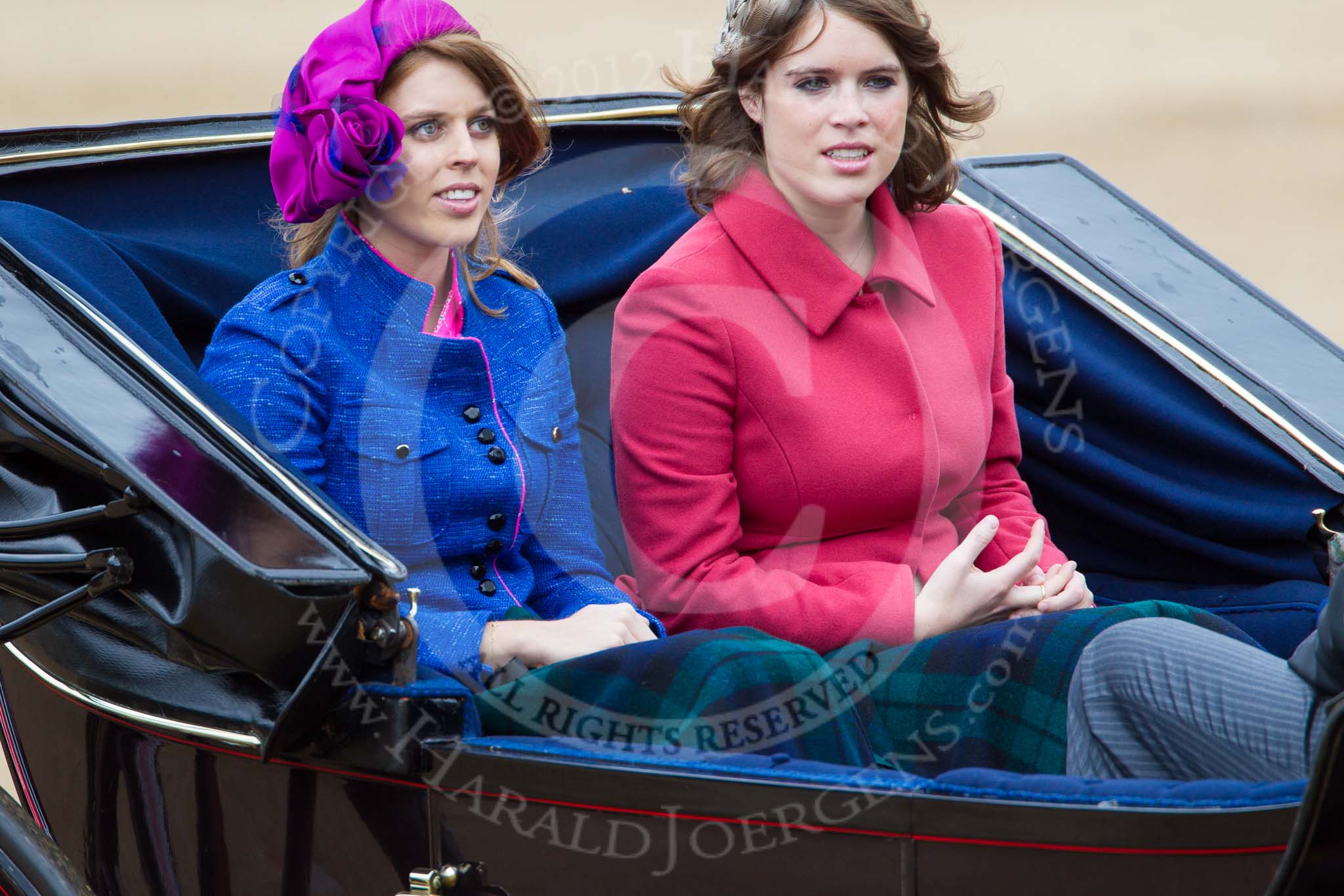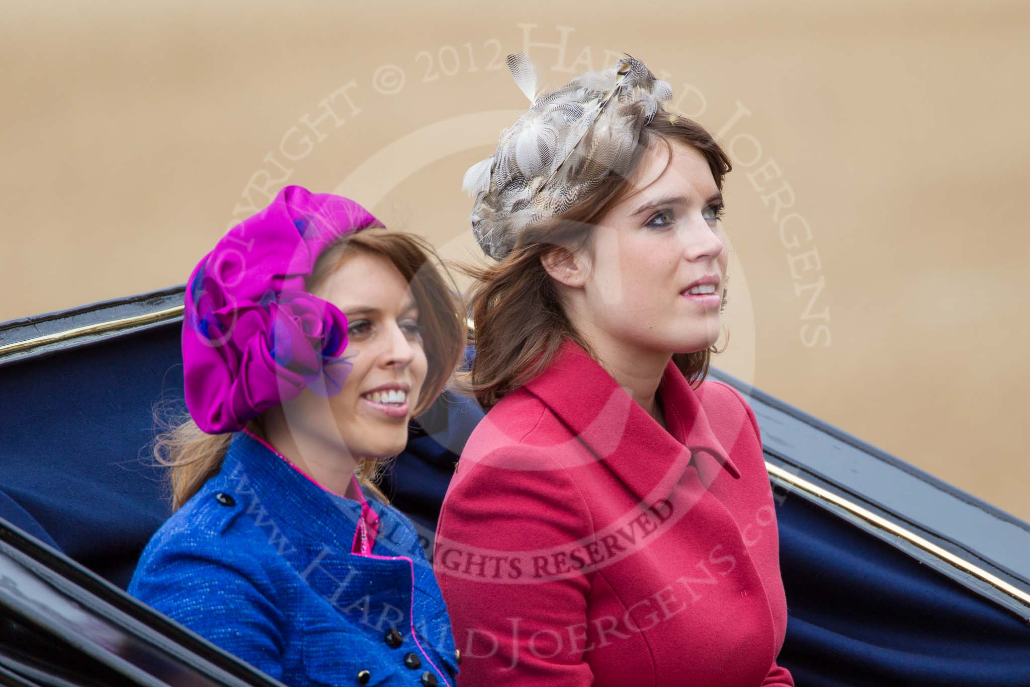 Trooping the Colour 2012: Princesses Beatrice and Eugenie of York in the second carriage..