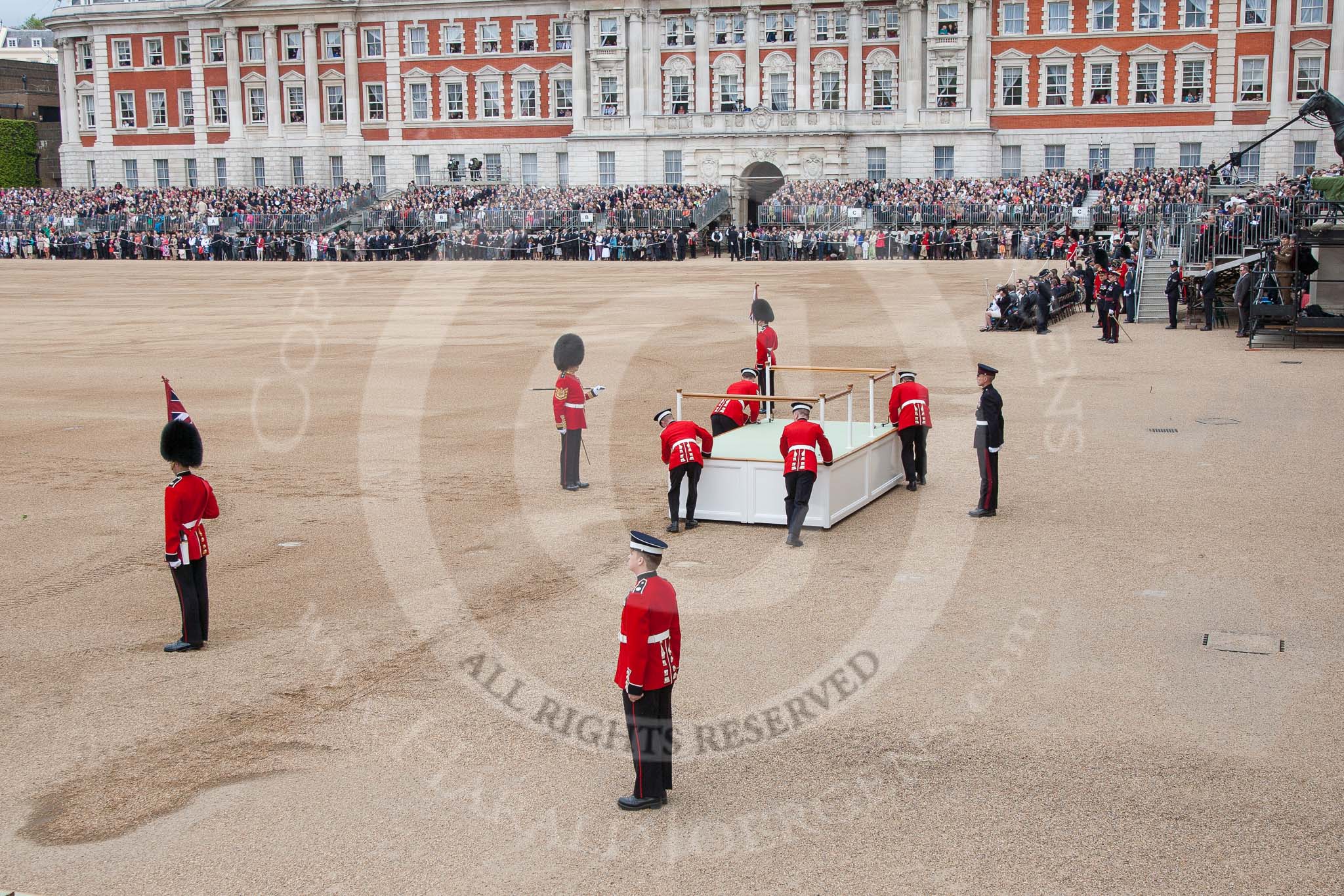 Trooping the Colour 2012: After the two carriages have passed, the saluting base for HM The Queen is moved into place..