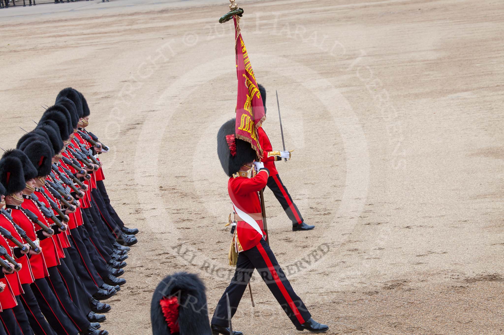 Trooping the Colour 2012: The Ensign, Second Lieutenant Hugo Codrington, carrying the Colour during the March Past..