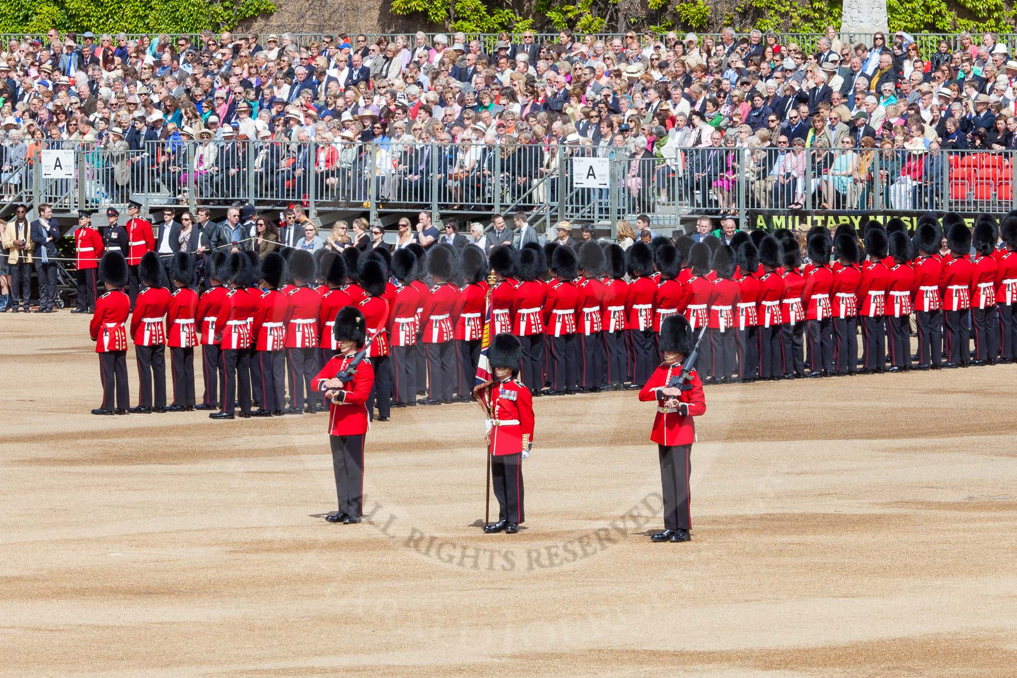 The Colonel's Review 2013: The Colour is now uncased, and the two sentries patrol to the left and right, to protect the Colour.. Horse Guards Parade, Westminster, London SW1, United Kingdom, on 08 June 2013 at 10:34, image #159