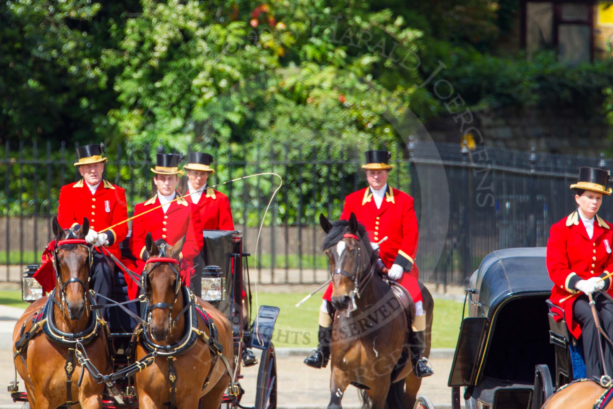 The Colonel's Review 2013: Two grooms leading the group of carriages with members of the Royal Family from Buckingham Palace to Horse Guards Building.. Horse Guards Parade, Westminster, London SW1, United Kingdom, on 08 June 2013 at 10:50, image #221