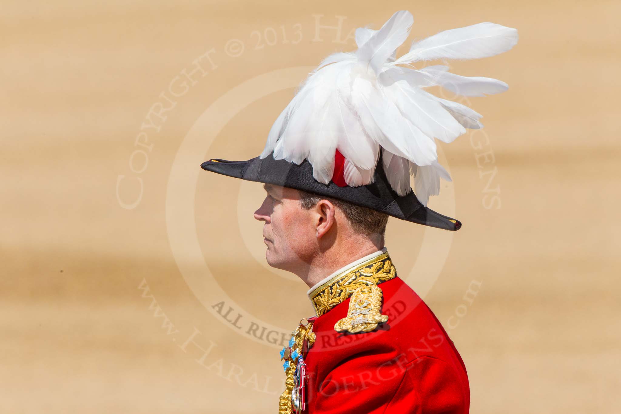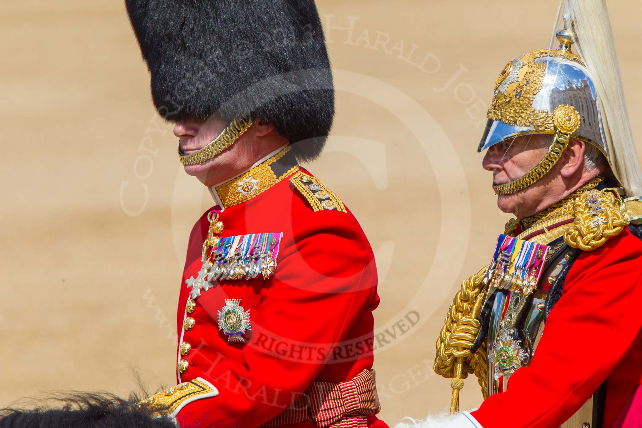 The Colonel's Review 2013: Silver-Stick-in-Waiting, Colonel Stuart Cowen, The Blues and Royals, The Chief of Staff, Colonel Hugh Bodington, Welsh Guards,The Aide-de-Camp, Captain John James Hathaway-White, Grenadier Guards, during the Inspection of the Line.. Horse Guards Parade, Westminster, London SW1, United Kingdom, on 08 June 2013 at 11:02, image #326