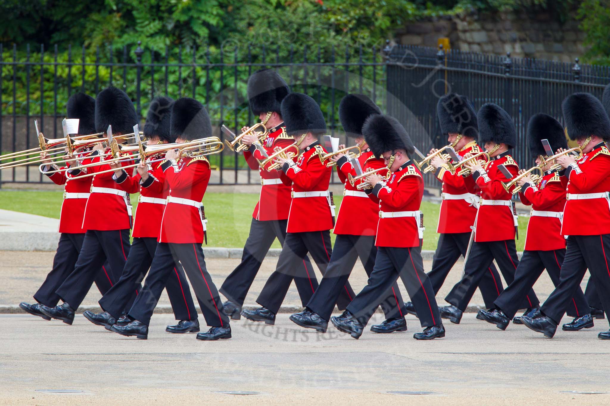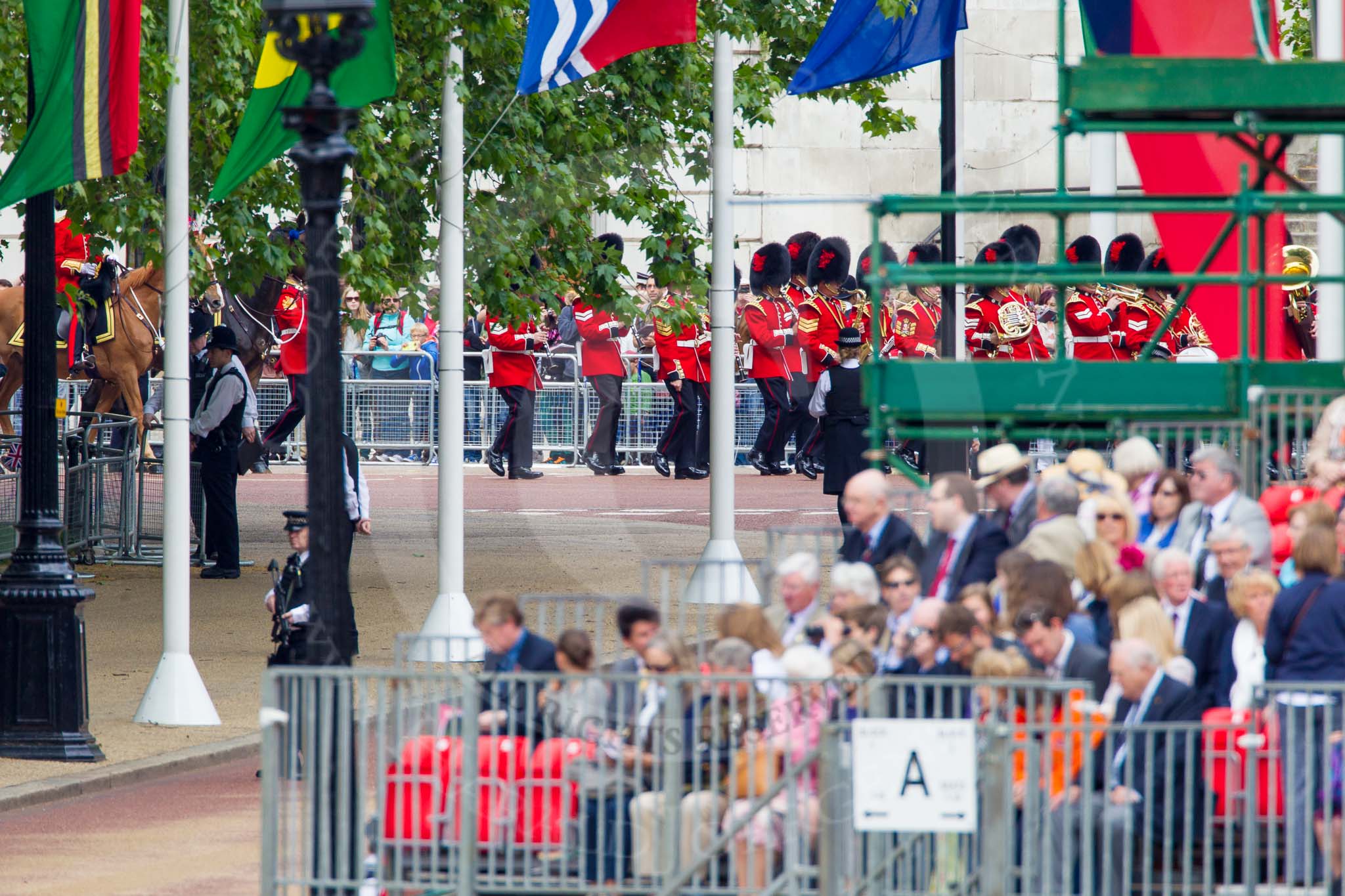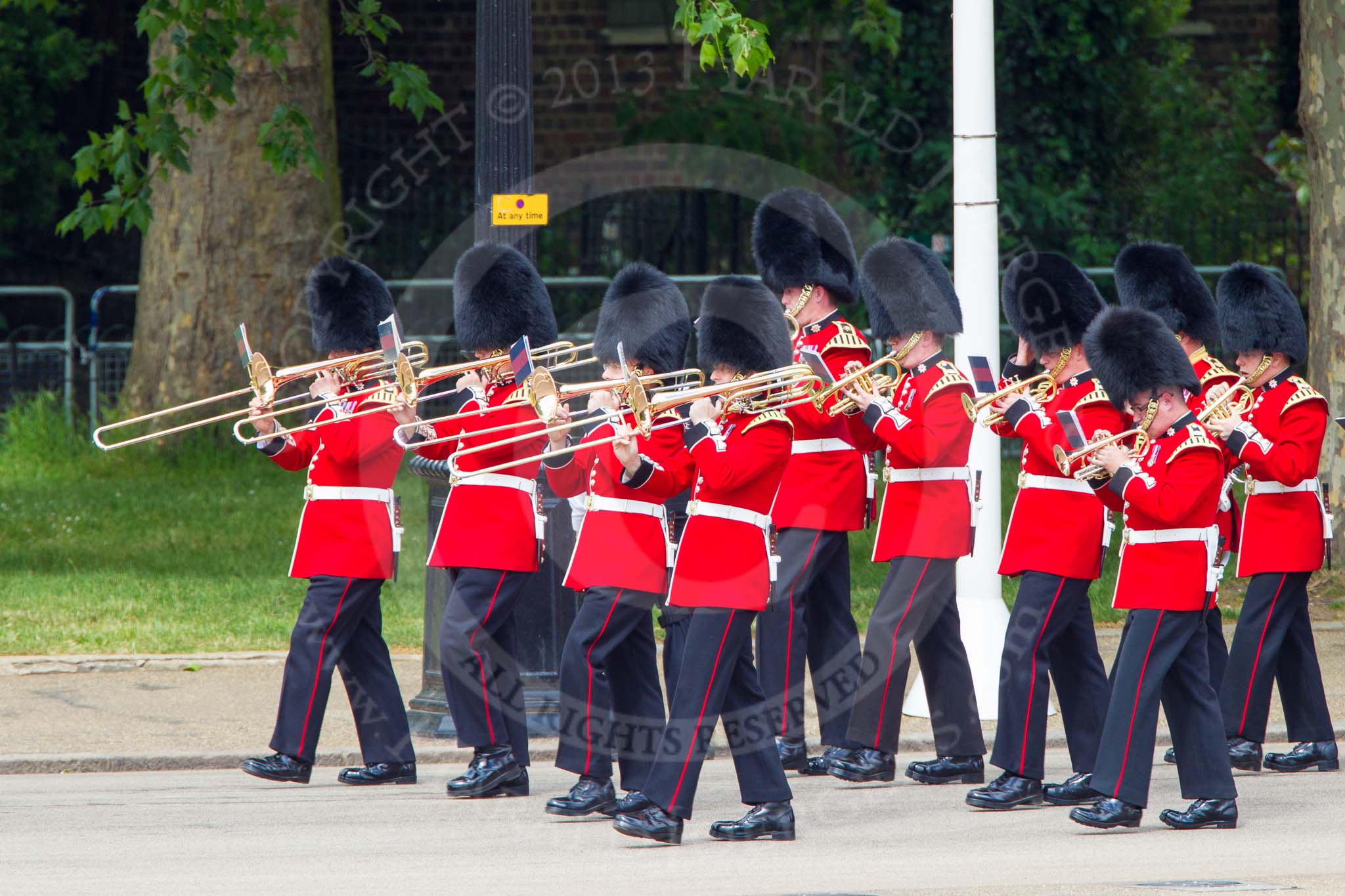 The Colonel's Review 2013: Musicians of the Band of the Coldstream Guards marching on Horse Guards Road..
