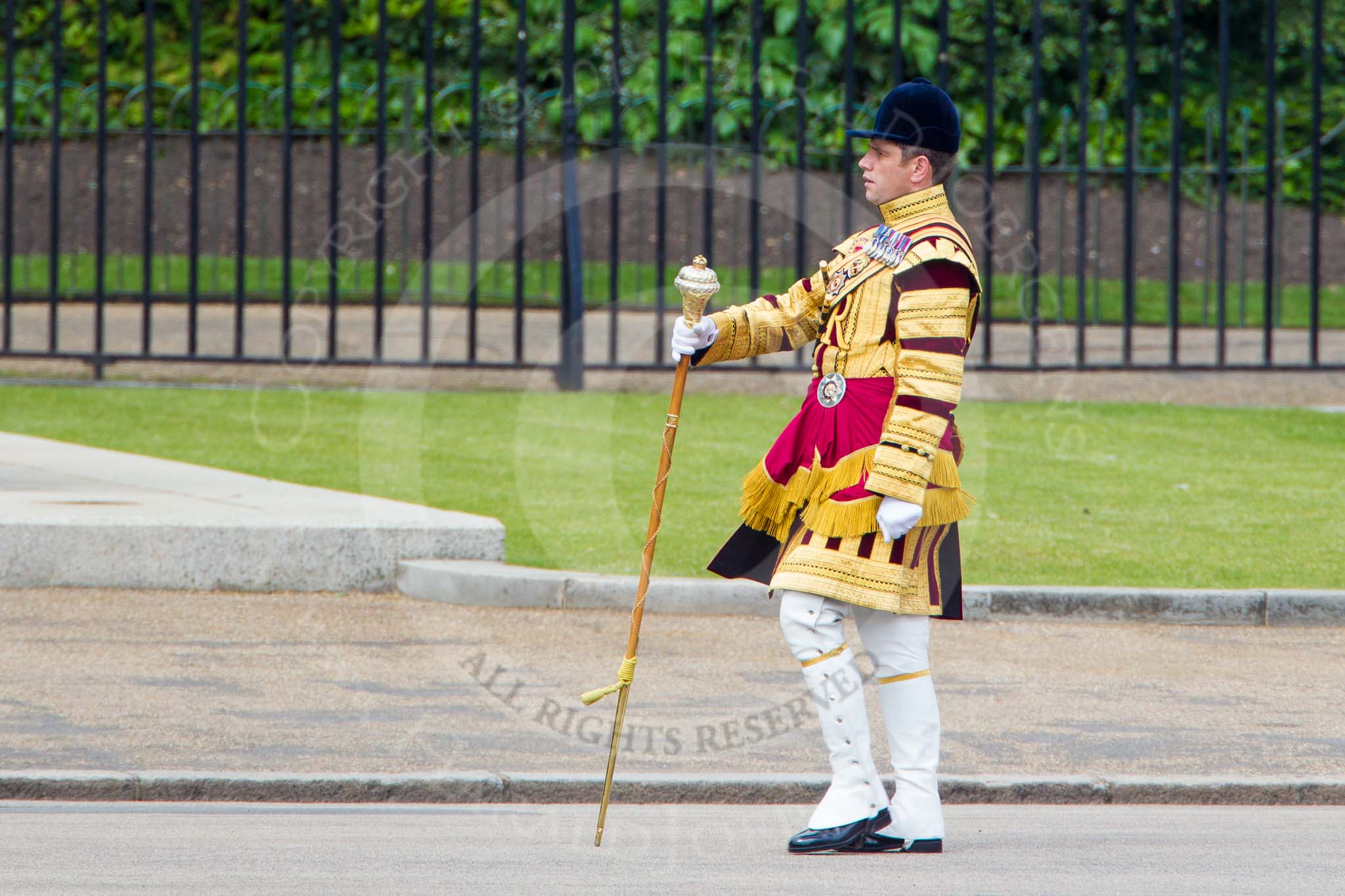 The Colonel's Review 2013: Senior Drum Major Matthew Betts, Grenadier Guards, leading the Band of the Coldstream Guards..
