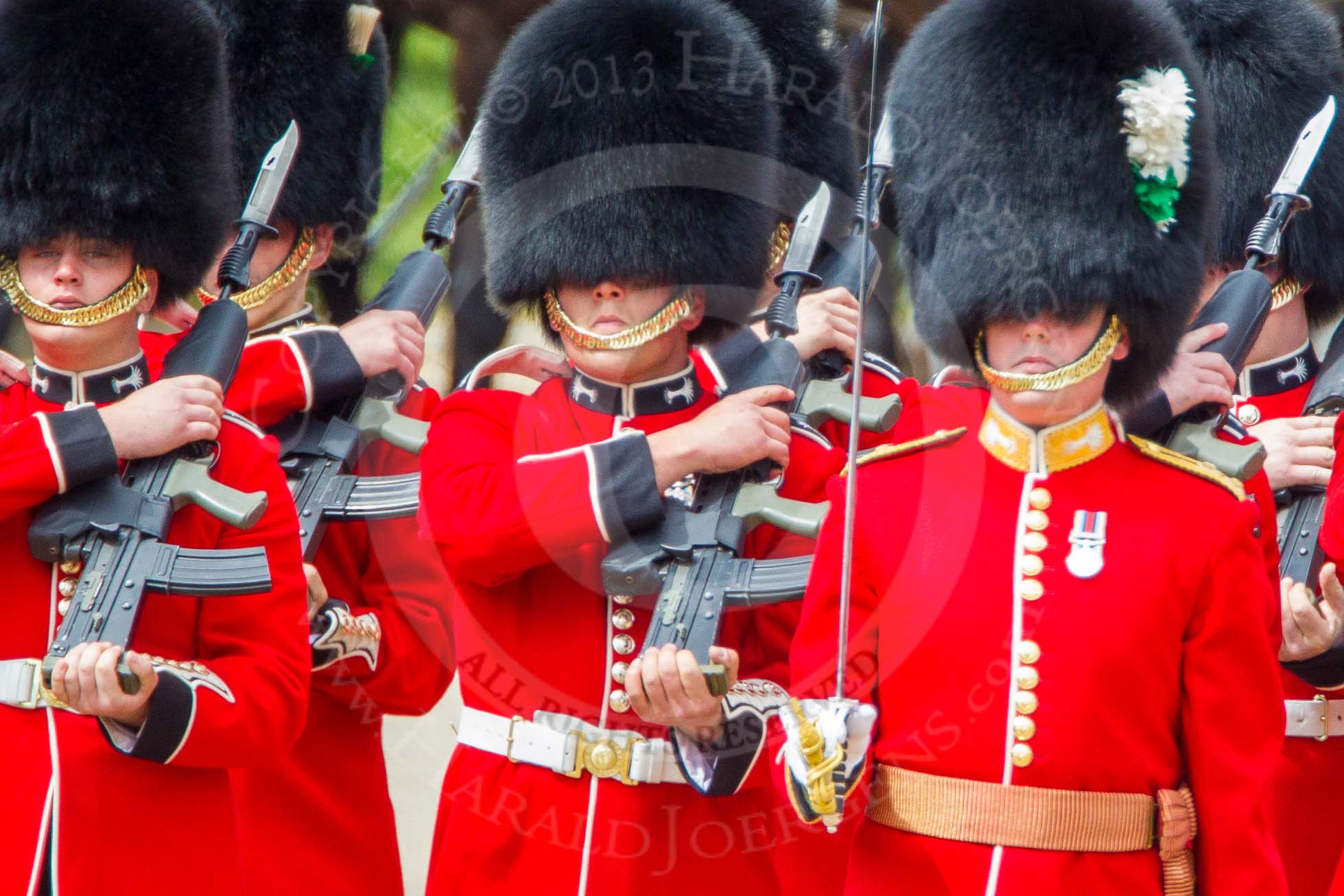 The Colonel's Review 2013: Captain F O Lloyd-George gives the orders for No. 1 Guard (Escort to the Colour),1st Battalion Welsh Guards.. Horse Guards Parade, Westminster, London SW1, United Kingdom, on 08 June 2013 at 11:26, image #588