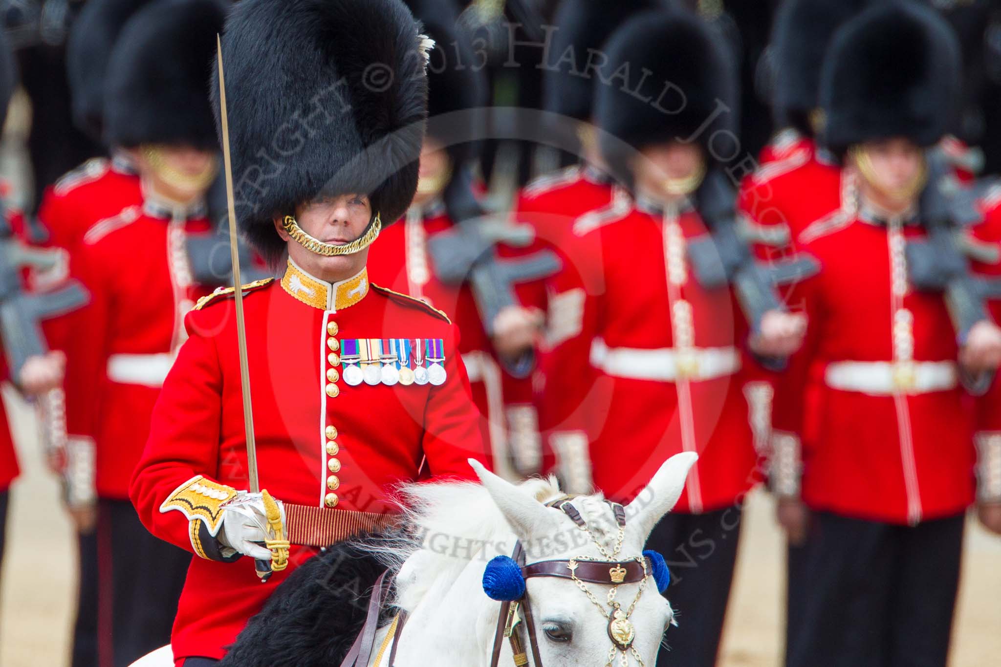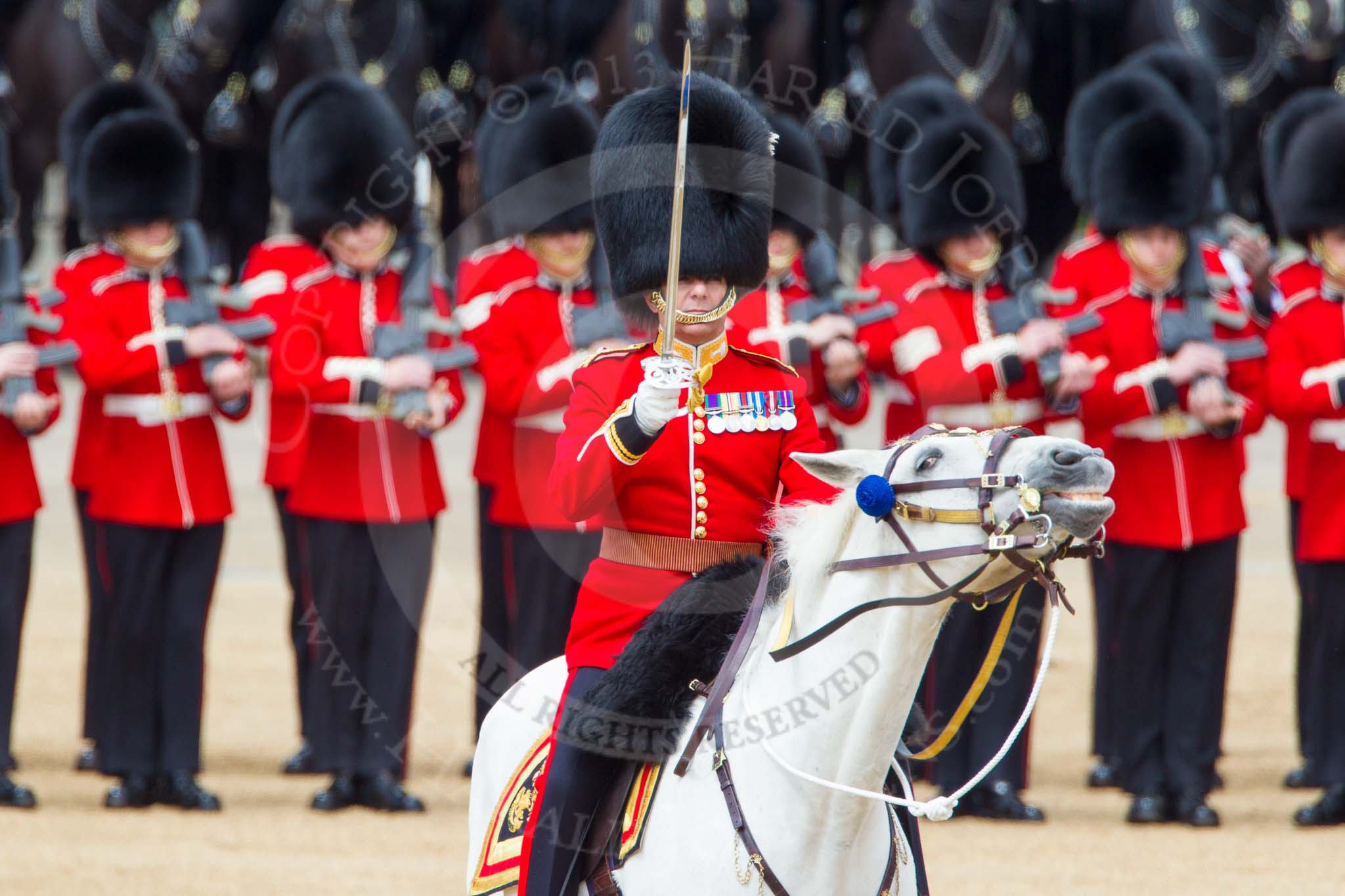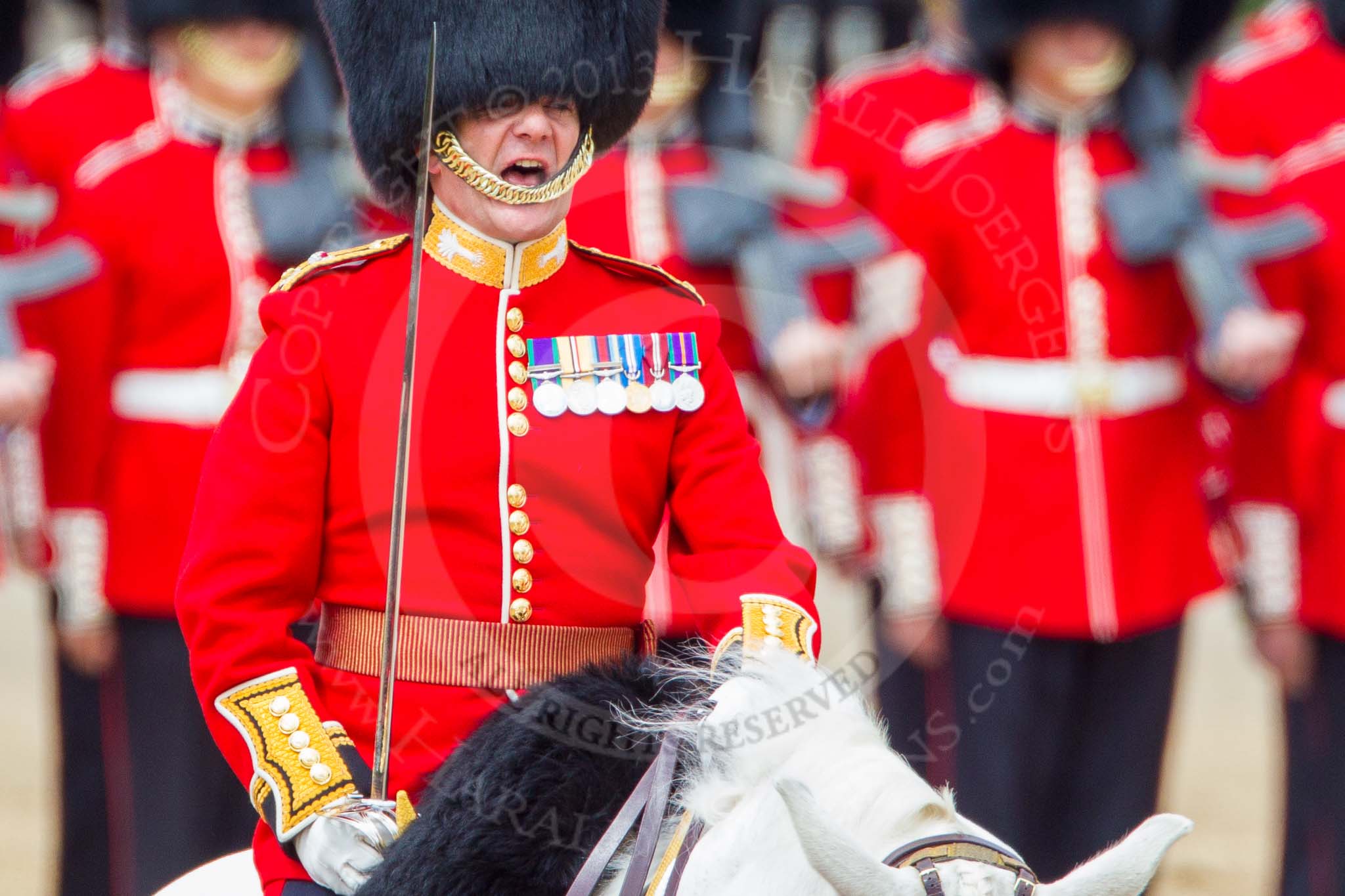 The Colonel's Review 2013: The Field Officer in Brigade Waiting, Lieutenant Colonel Dino Bossi, Welsh Guards gives the command to form divisions.. Horse Guards Parade, Westminster, London SW1, United Kingdom, on 08 June 2013 at 11:27, image #591