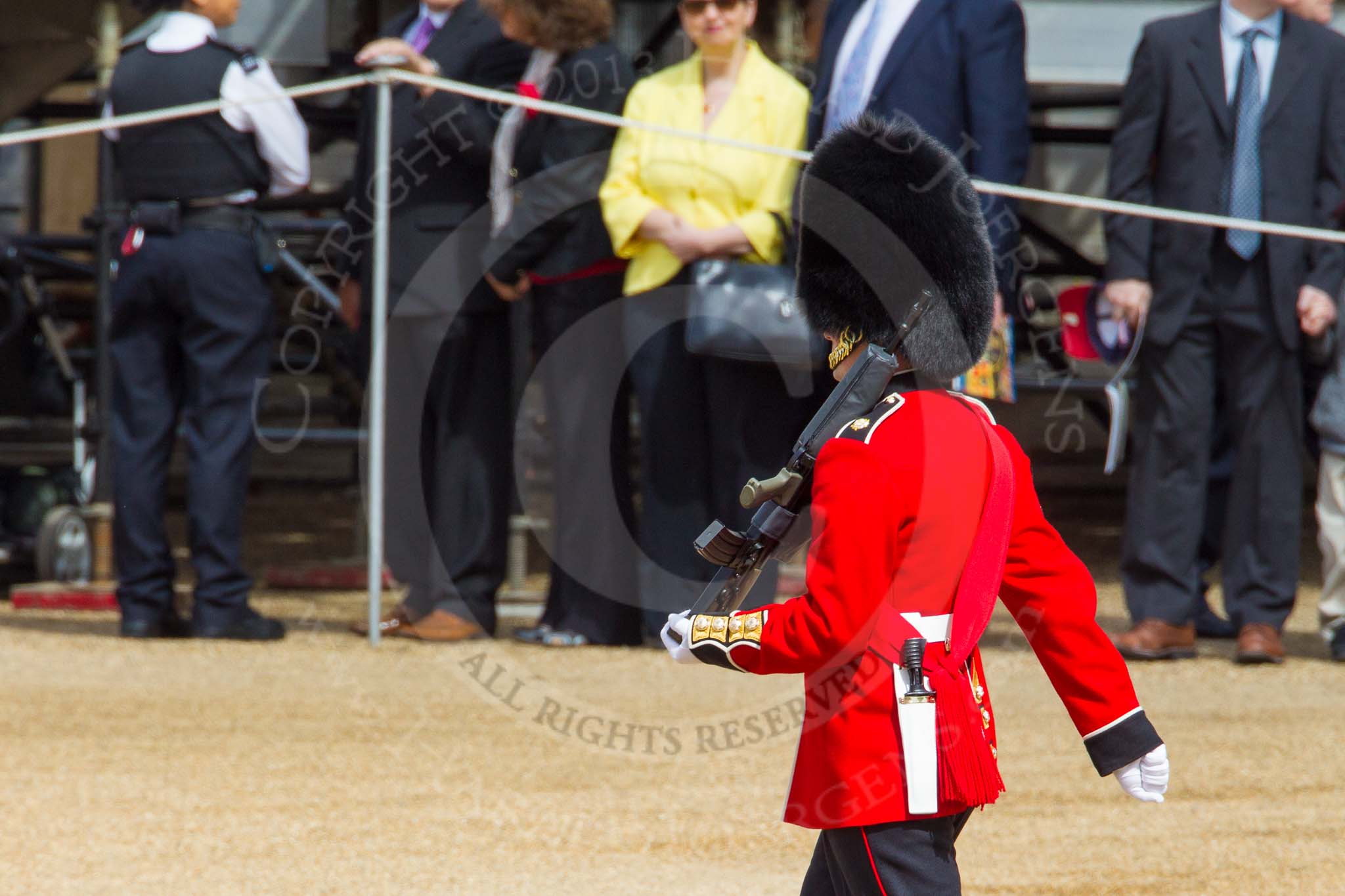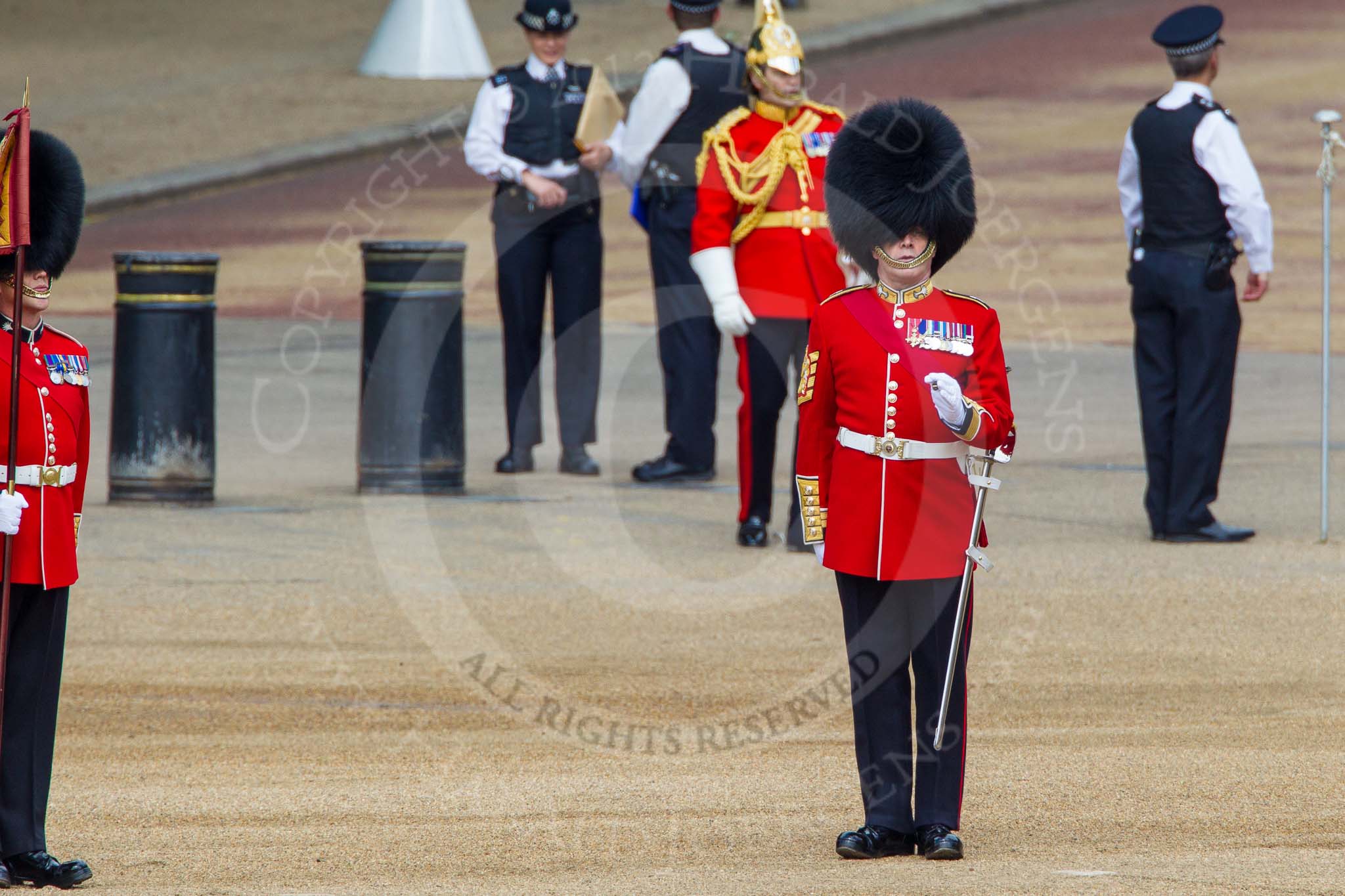 The Colonel's Review 2013: The Keepers of the Ground are in position, and WO1 Garrison Sergeant Major William 'Bill' Mott OBE MVO, Welsh Guards is making sure everything is in perfect order.. Horse Guards Parade, Westminster, London SW1, United Kingdom, on 08 June 2013 at 10:18, image #74